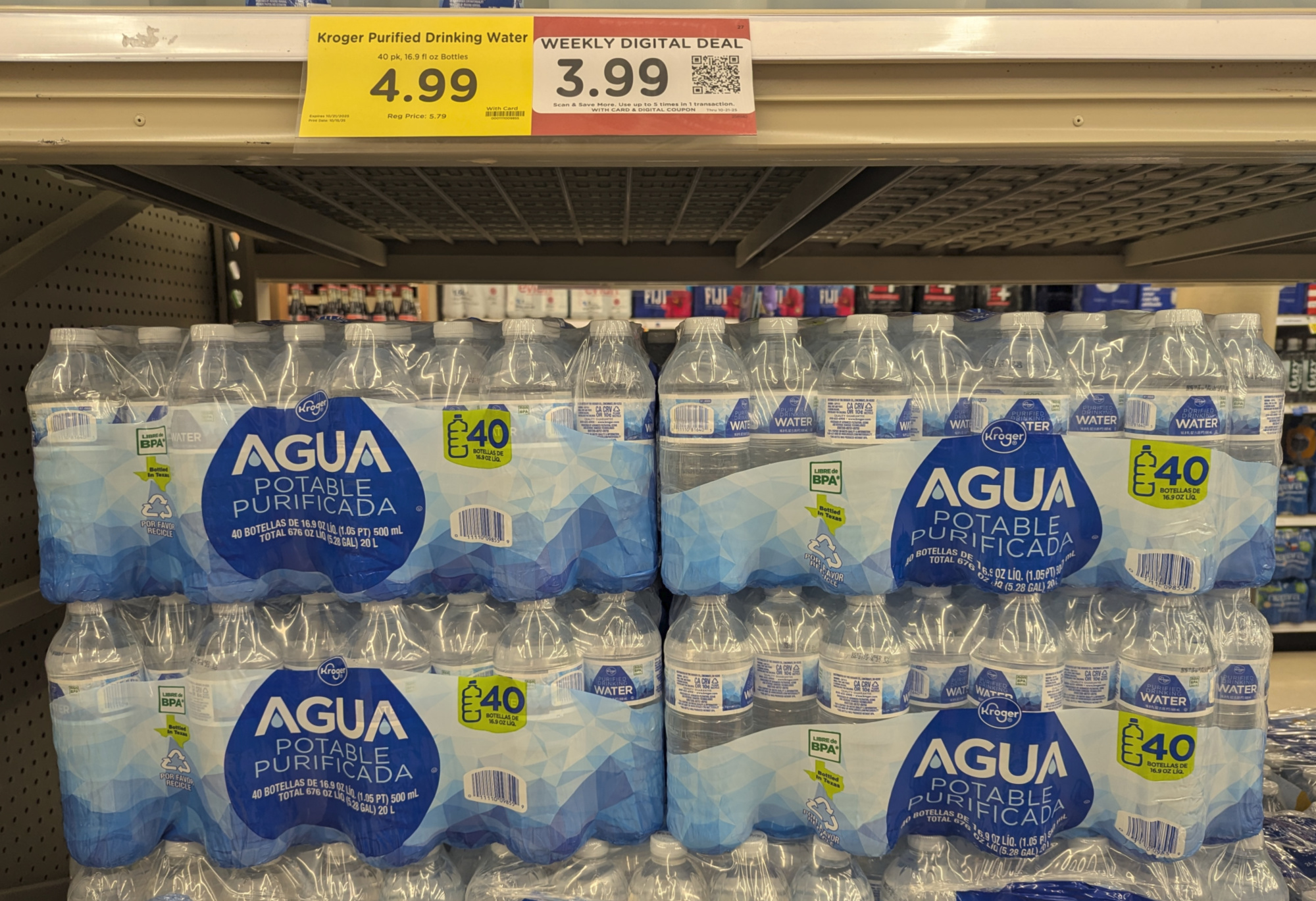 Kroger Water, 40-pk, 16.9 oz, $4.99 (reg $5.79) – through 10/21