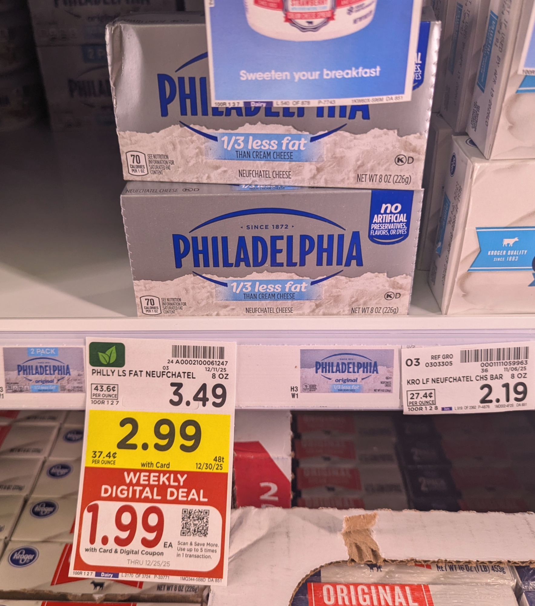 Philadelphia Cream Cheese, 8 oz, $2.99 (reg $3.49) – through 12/25