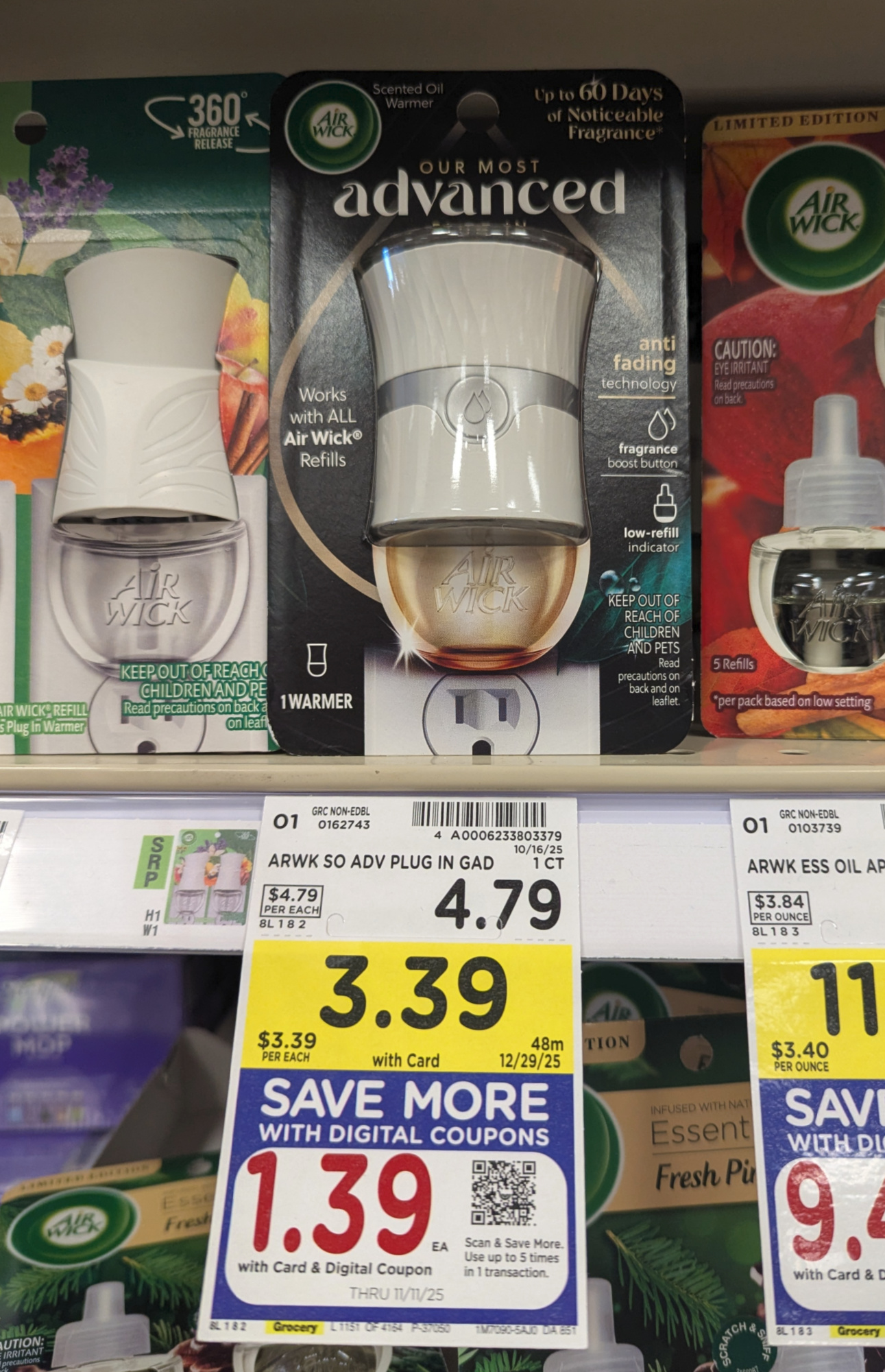 Air Wick Advanced Scented Oil Warmer, 1 ct, $3.39 (reg $4.79) – through 11/11