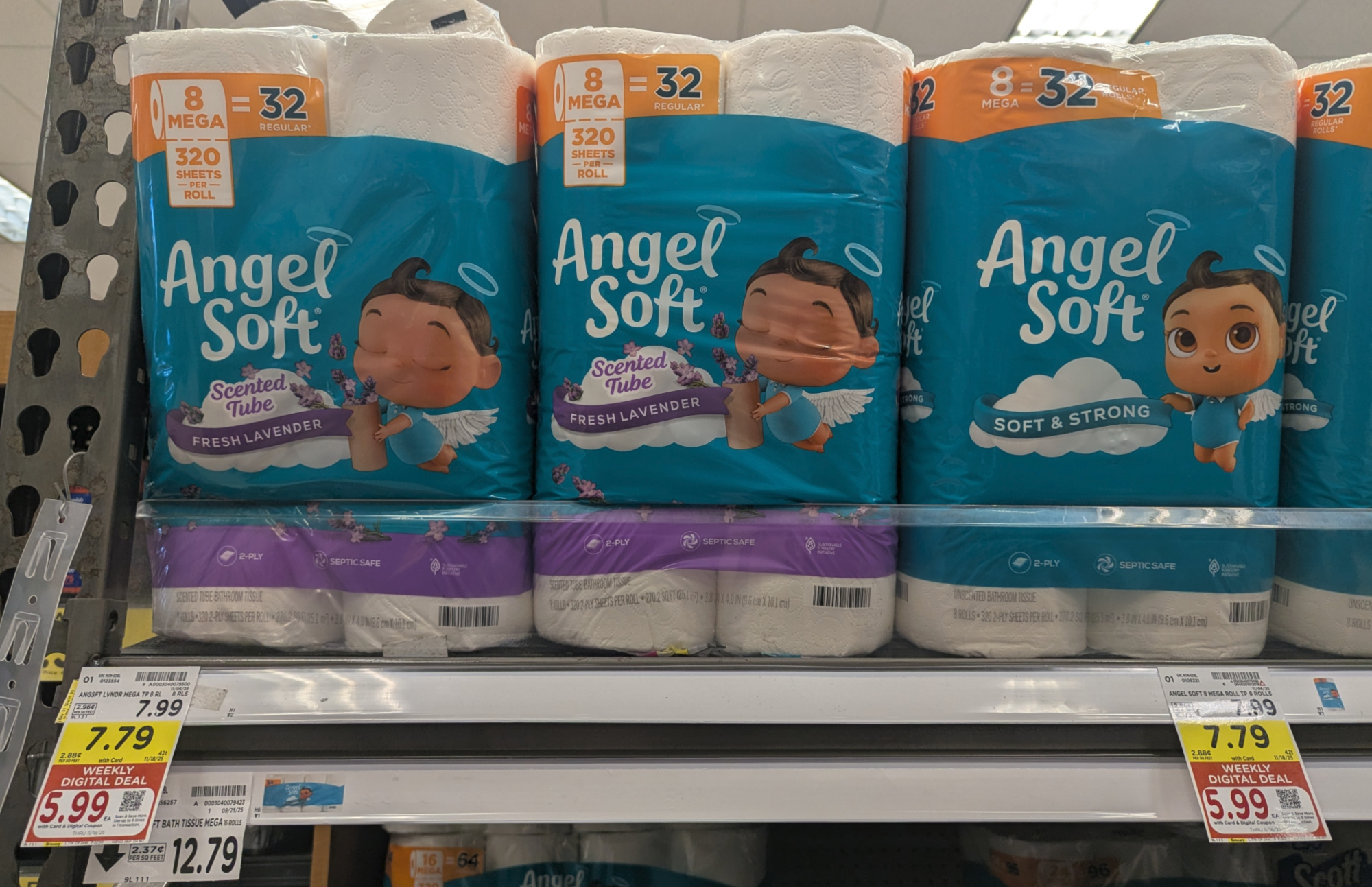 –$1.80/1 Angel Soft Bath Tissue, 8 Mega Rolls, Kroger Super Saver Digital Coupon (use up to 5 times in a single transaction)