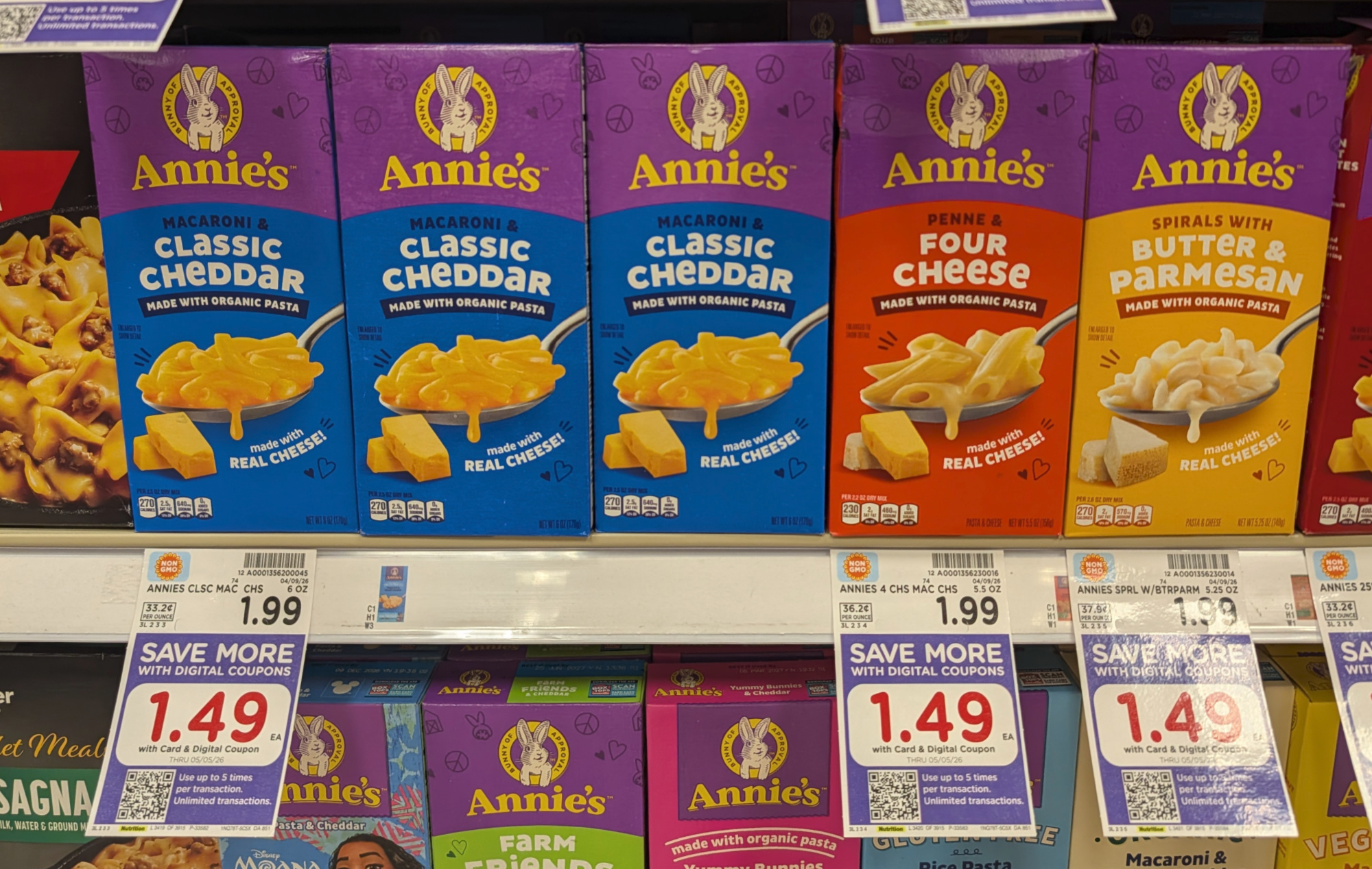 $0.50/1 Annie’s Mac & Cheese, 5.5 to 6 oz, Kroger Super Saver Digital Coupon (use up to 5 times in a single transaction)