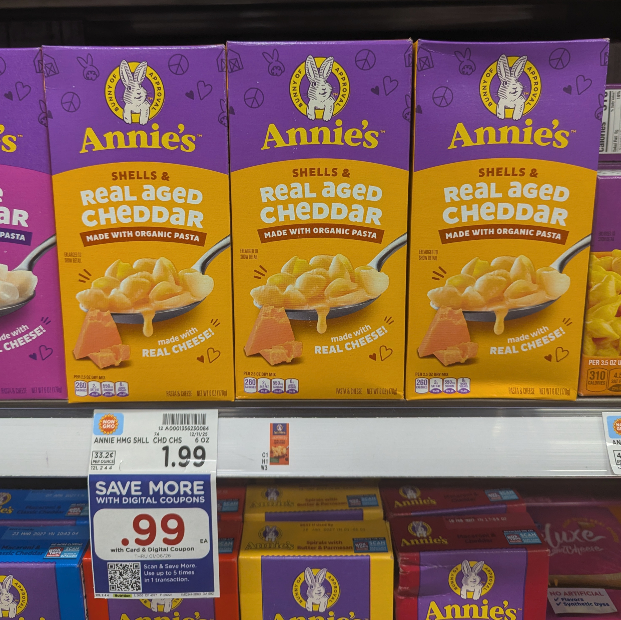 –$1/1 Annie’s Mac & Cheese, 5.5 to 6 oz, Kroger Super Saver Digital Coupon (use up to 5 times in a single transaction)