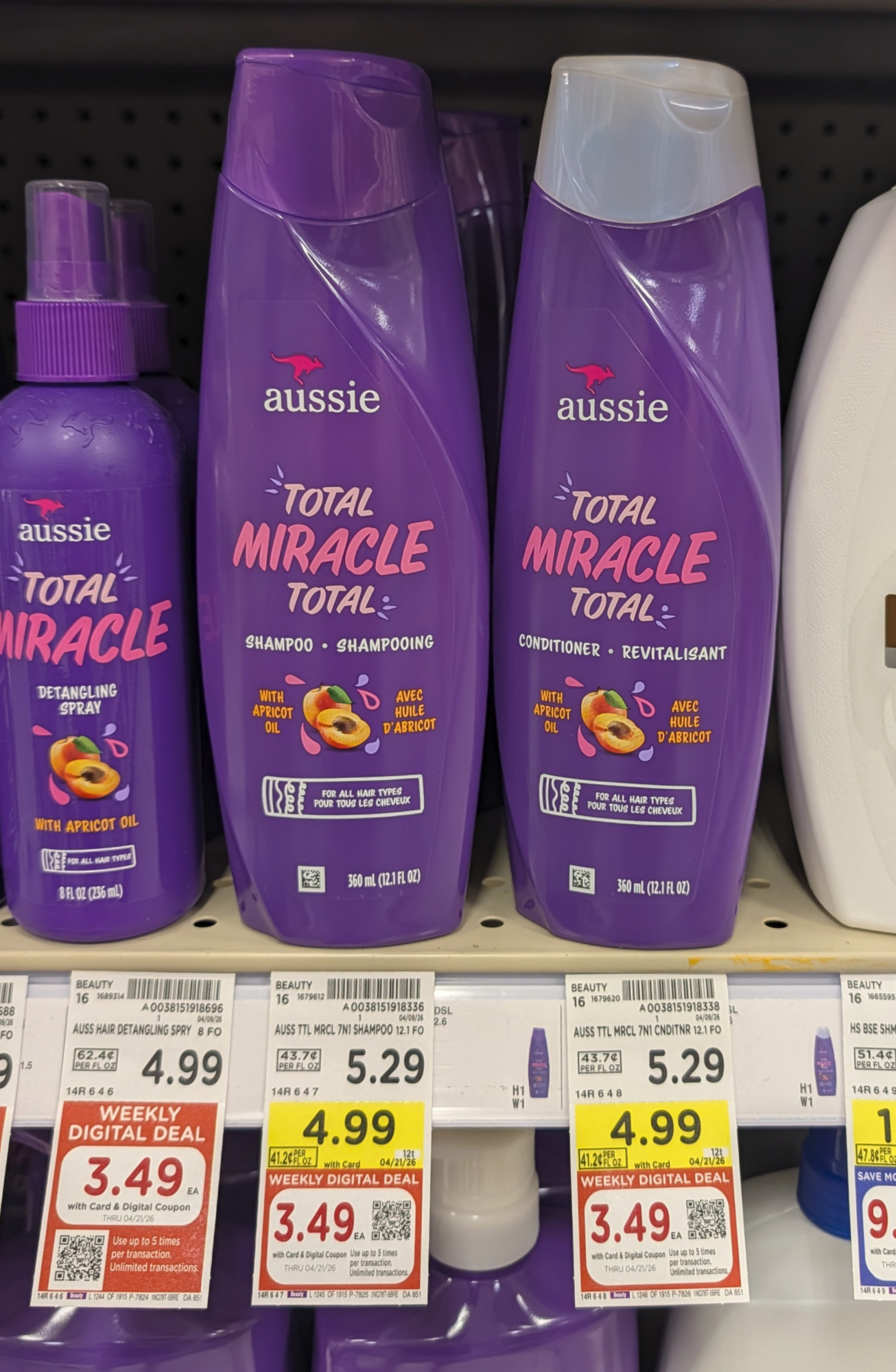 If Aussie is your preferred brand of haircare, head over to Kroger and pick up bottles on the cheap. Use the sale and digital coupon to get a couple of your faves for just $3.49 each.