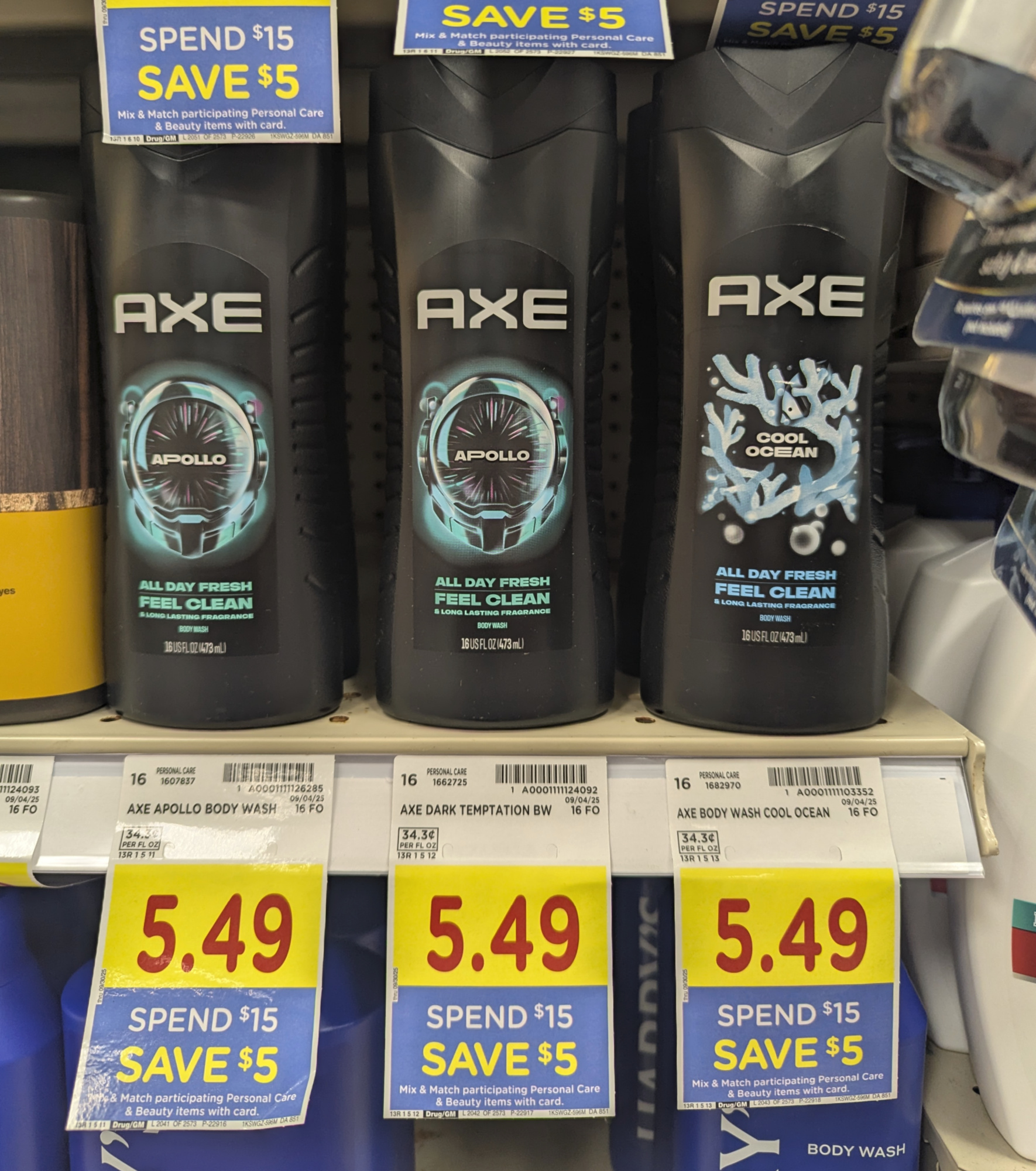 $5/2 AXE Body Wash (Excludes trial and travel sizes) (Kroger Digital Coupon)