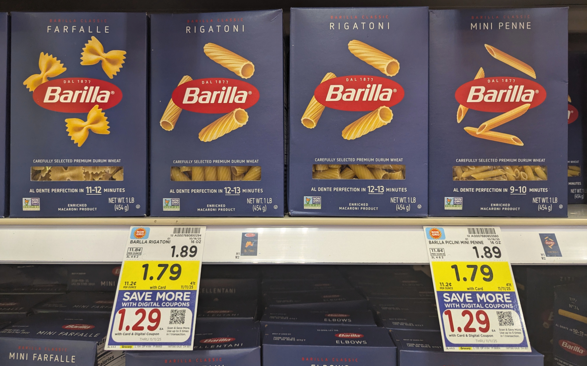 –$0.50/1 Barilla Pasta, 12 to 16 oz, Kroger Super Saver Digital Coupon (use up to 5 times in a single transaction)