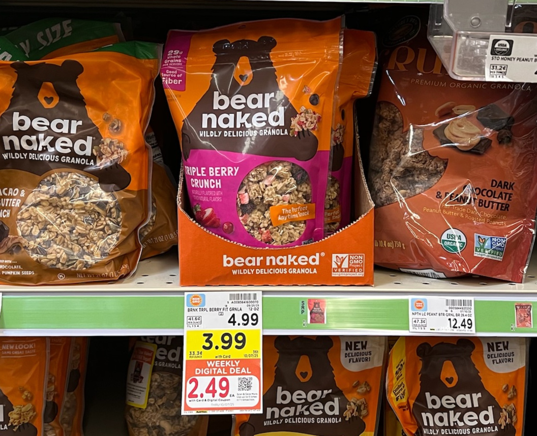Use the digital coupon to pick up bags of Bear Naked Granola for just $2.49 the next time you shop at Kroger. Pick up your favorite flavors at a nice discount.