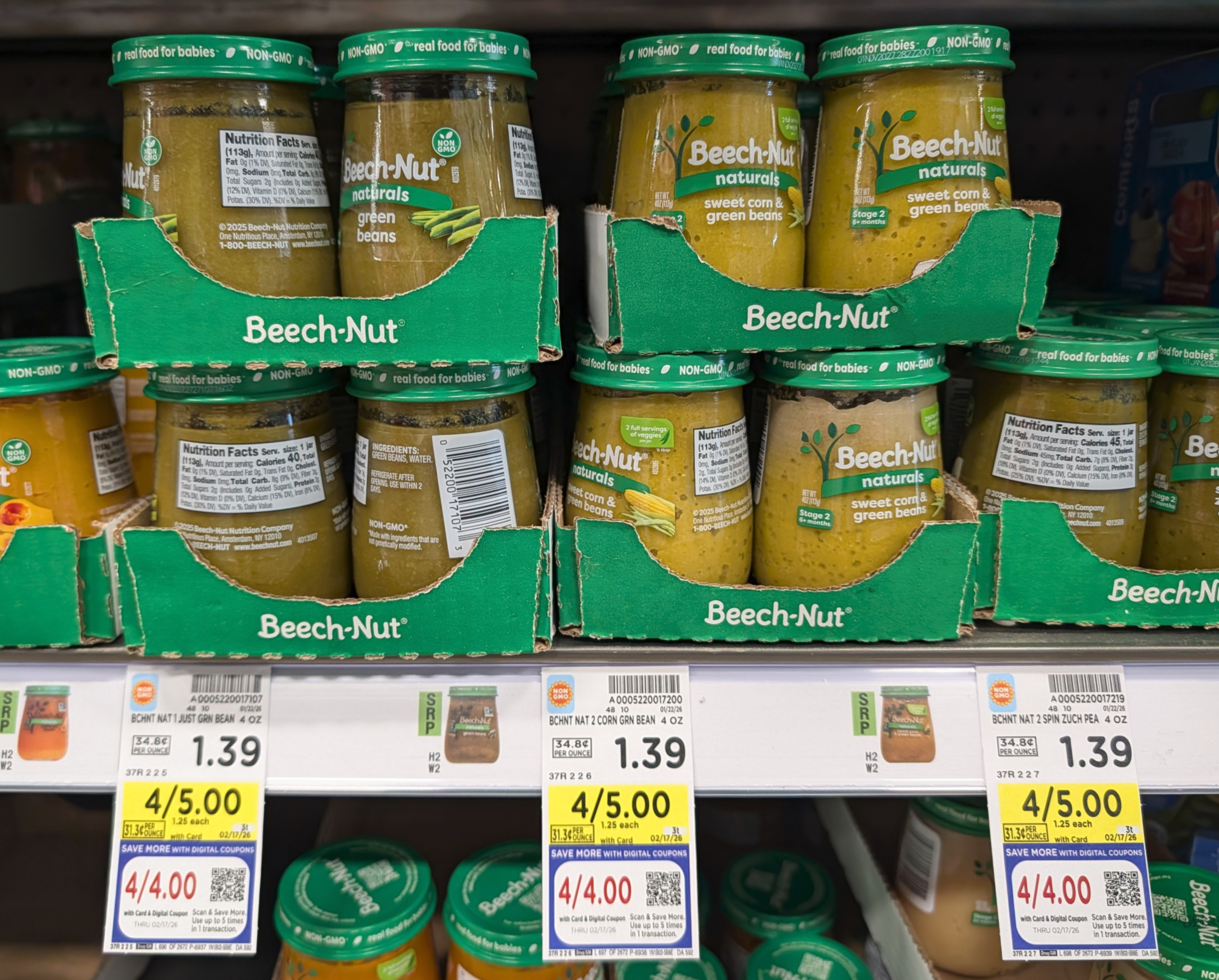 –$1/4 Beech-Nut Naturals Baby Food, 4 oz jar, Kroger Super Saver Digital Coupon (use up to 5 times in a single transaction)