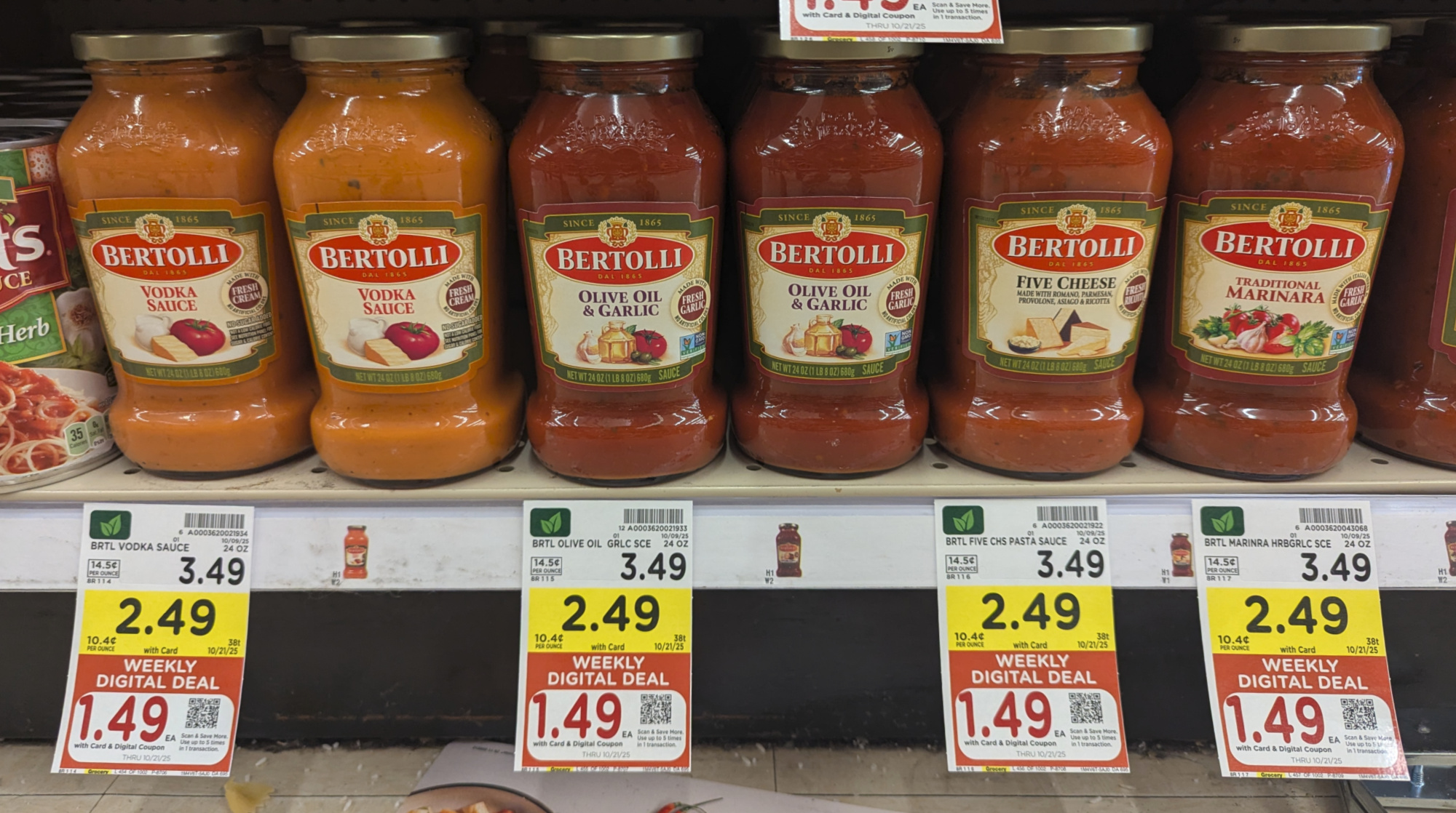 Head over to Kroger for a deal on Bertolli Pasta Sauce. Combine the sale and coupon to pay just $1.49 per jar.