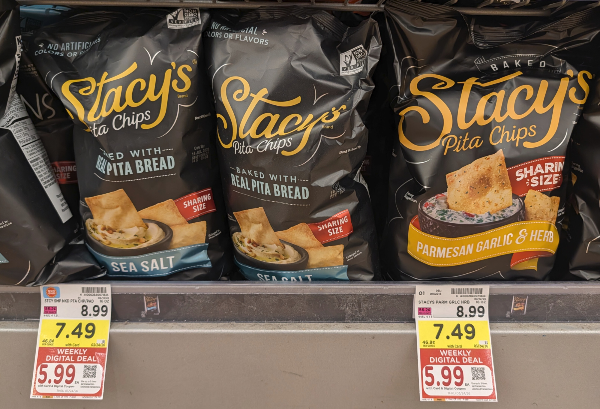 If you’re craving something crunchy and delicious, head to Kroger to save on Stacy’s Pita Chips. By combining the sale and the digital coupon, you can get up to FIVE of the big bags for just $5.99 each.