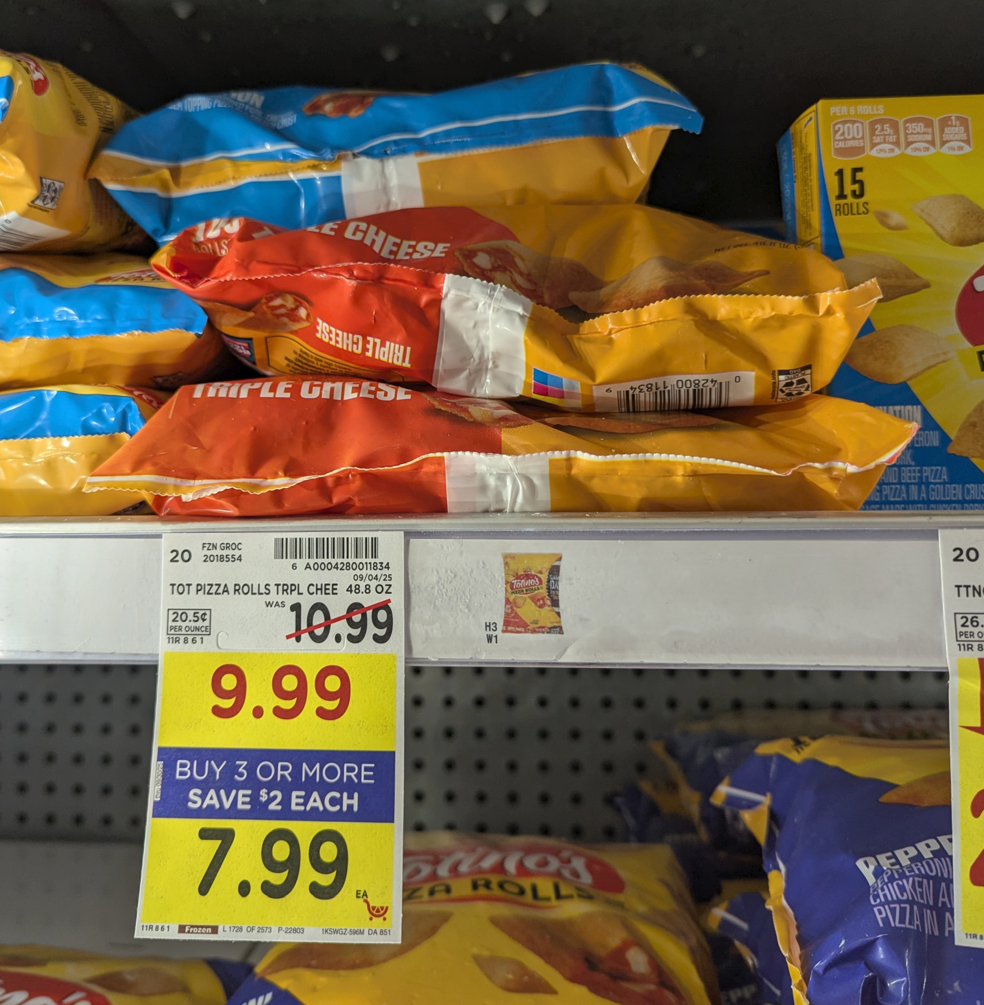 Pick up a big bag of Totino’s Pizza Rolls for a discounted price when you shop this week at Kroger. Grab a bag for as little as $7.49 with the sale and coupon combo.