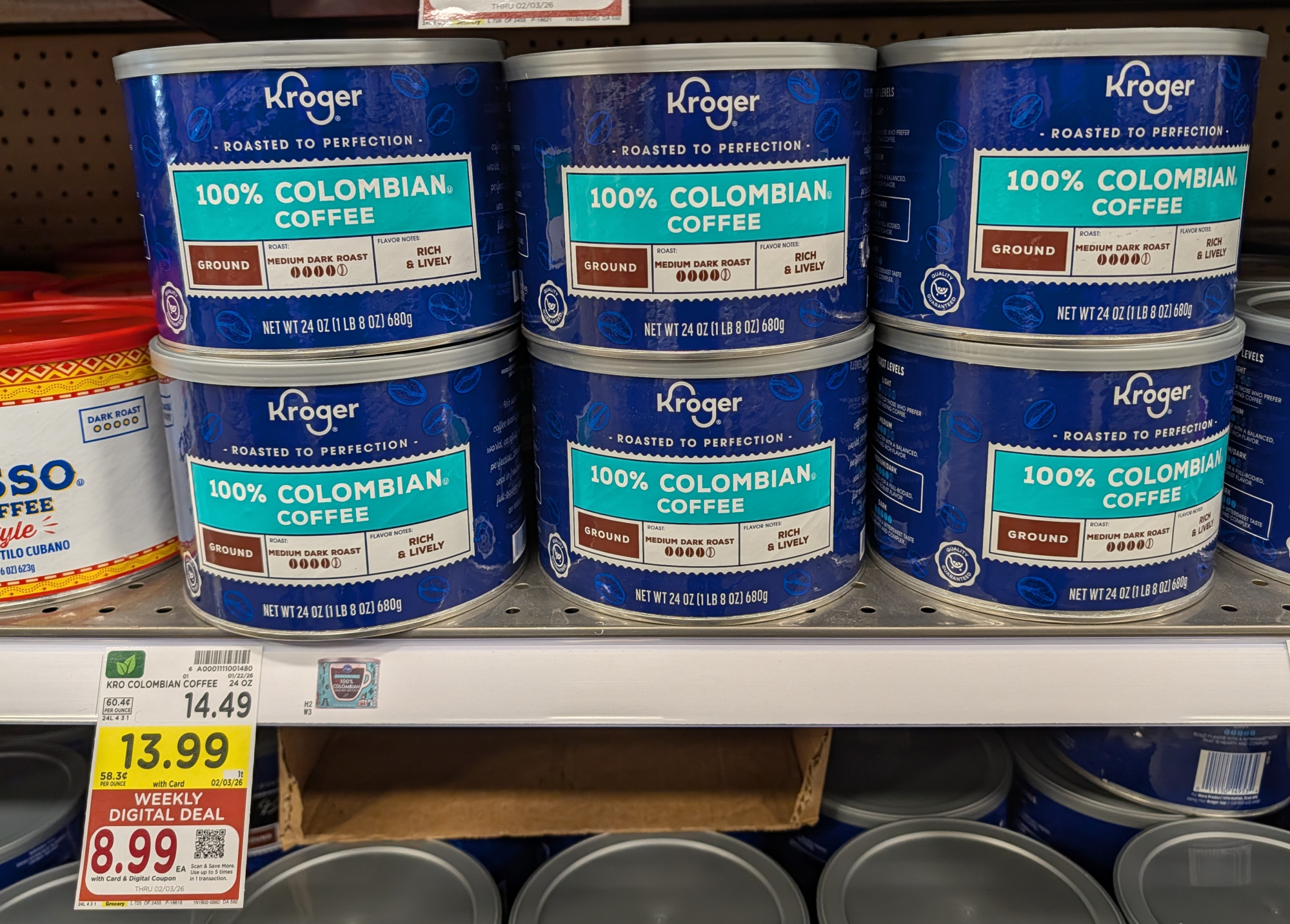 Score a great deal on coffee! Stock up on cans of Kroger Coffee to start your morning off right. After coupon, you pay just $8.99. Don’t forget you can grab up to FIVE cans at a discount.