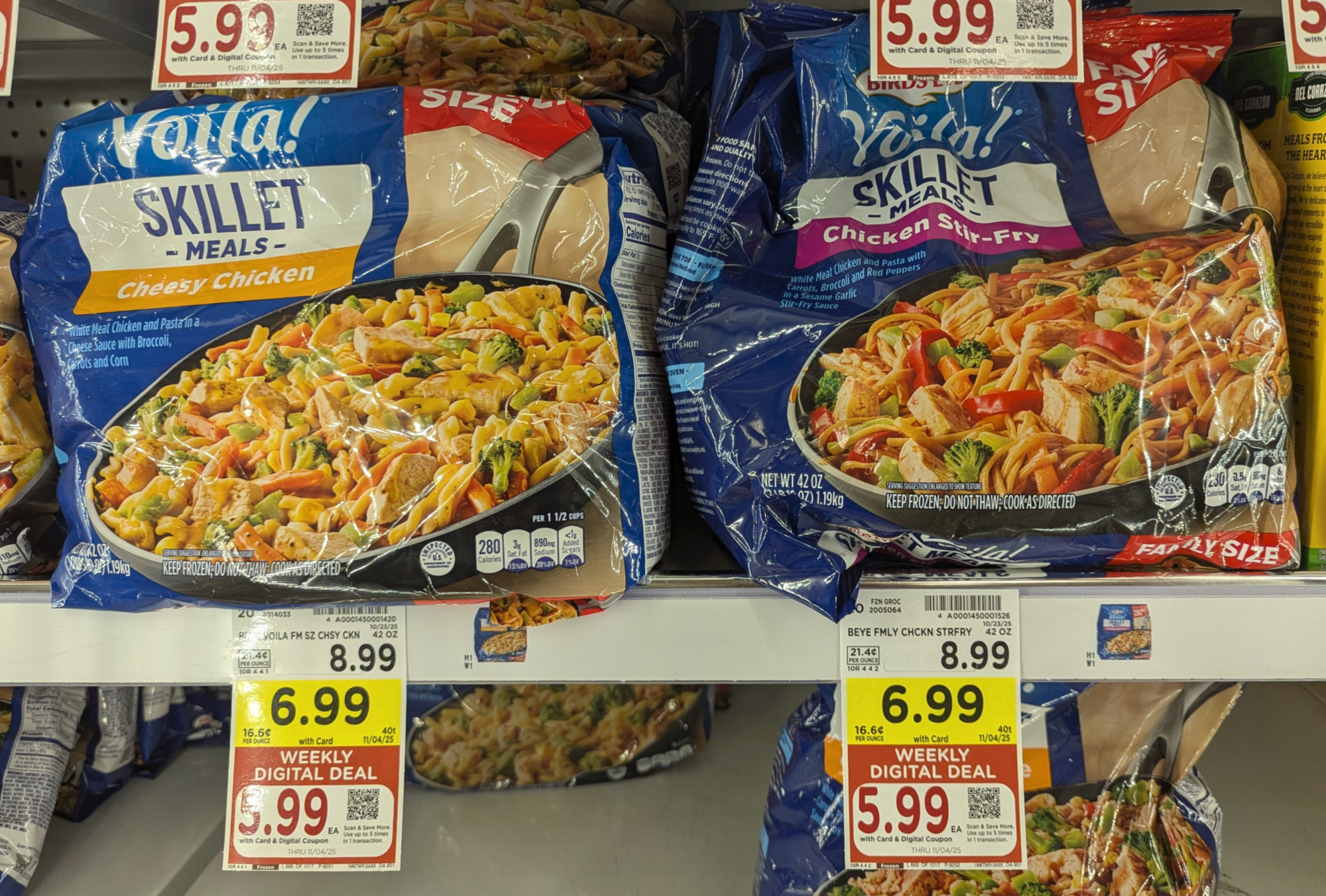 This week you can save on the family size bags of Birds Eye Voila! Skillet Meals. They are on sale at Kroger with a digital coupon to pair up. You pay just $5.99 per bag!