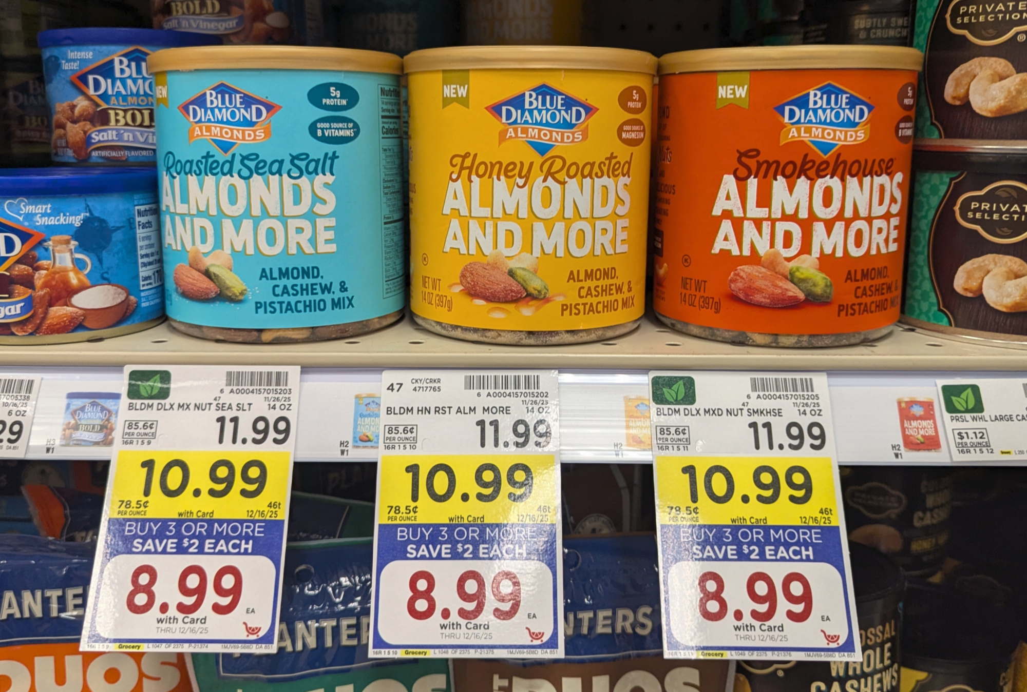 Looking for a healthy snack? Get over to Kroger and get Blue Diamond Almonds and More at a super discount with sale and cash back offer.