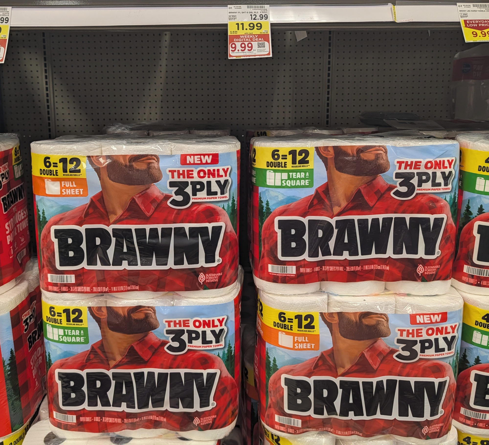 $2/1 Brawny Paper Towels, 6 Double Rolls, Kroger Super Saver Digital Coupon (use up to 5 times in a single transaction)