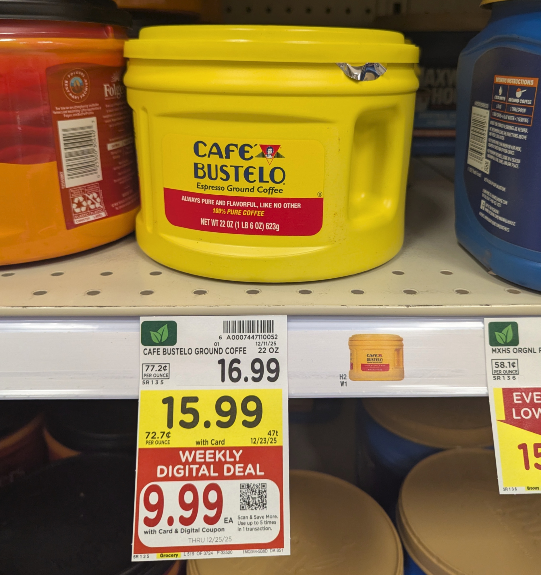 Cafe Bustelo Coffee, 22 to 25.9 oz can, $15.99 (reg $16.99) – through 12/25