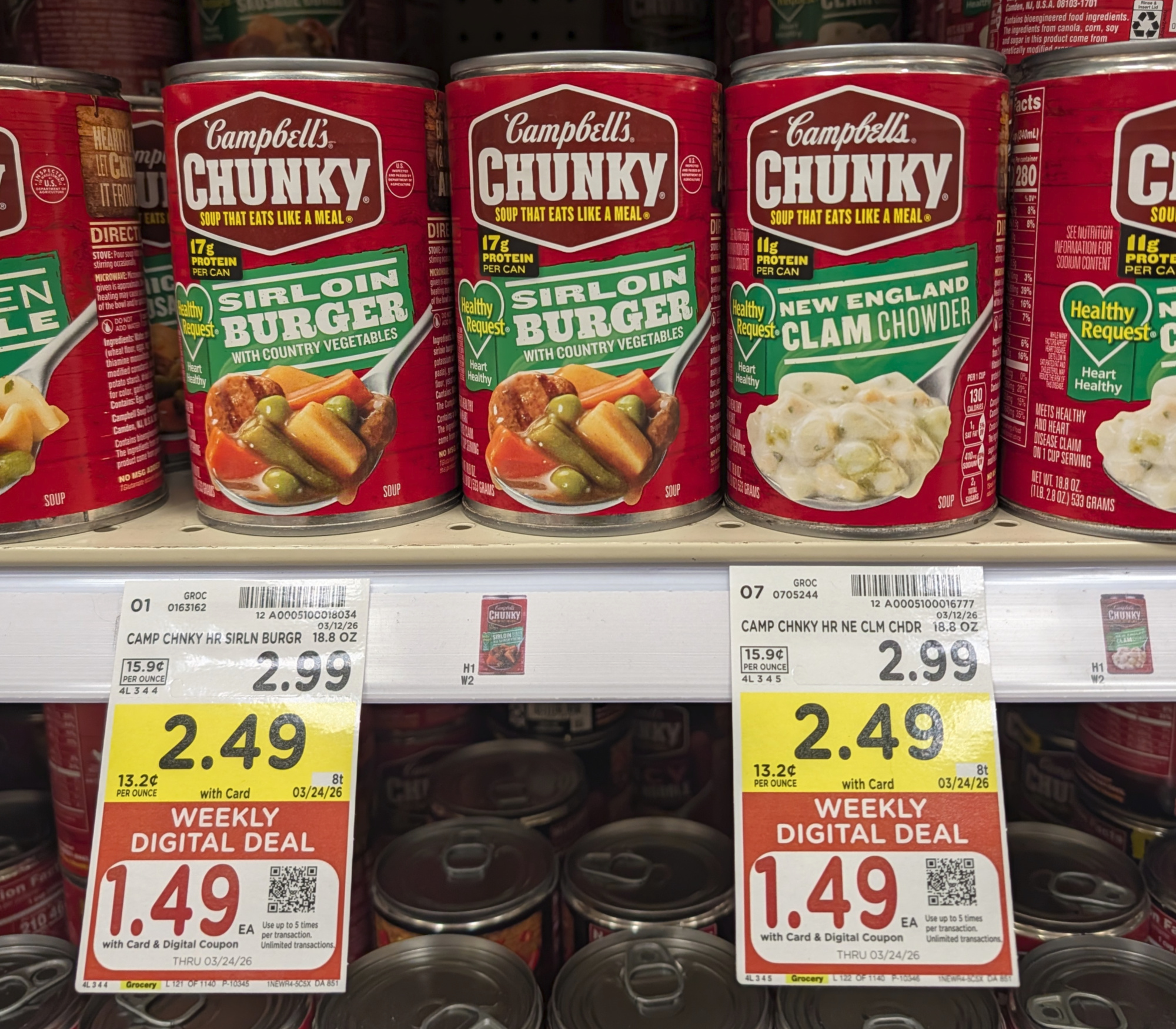 Campbell’s Chunky Soup, 18.6 to 19 oz, $2.49 (reg $2.99) – through 3/24
