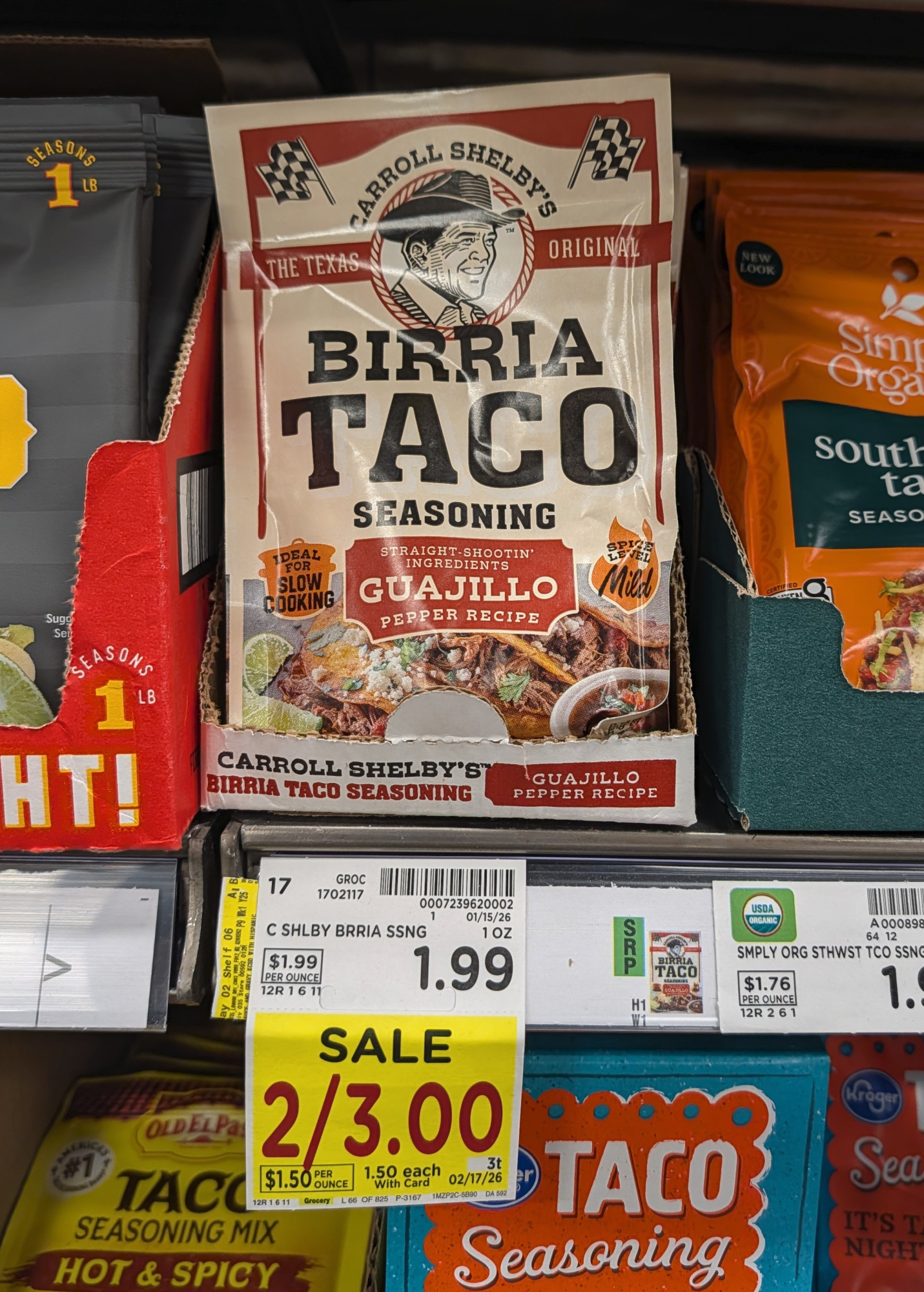 Carroll Shelby’s Taco Seasoning, 1 oz, 2/$3 (reg $1.99) – through 2/17
