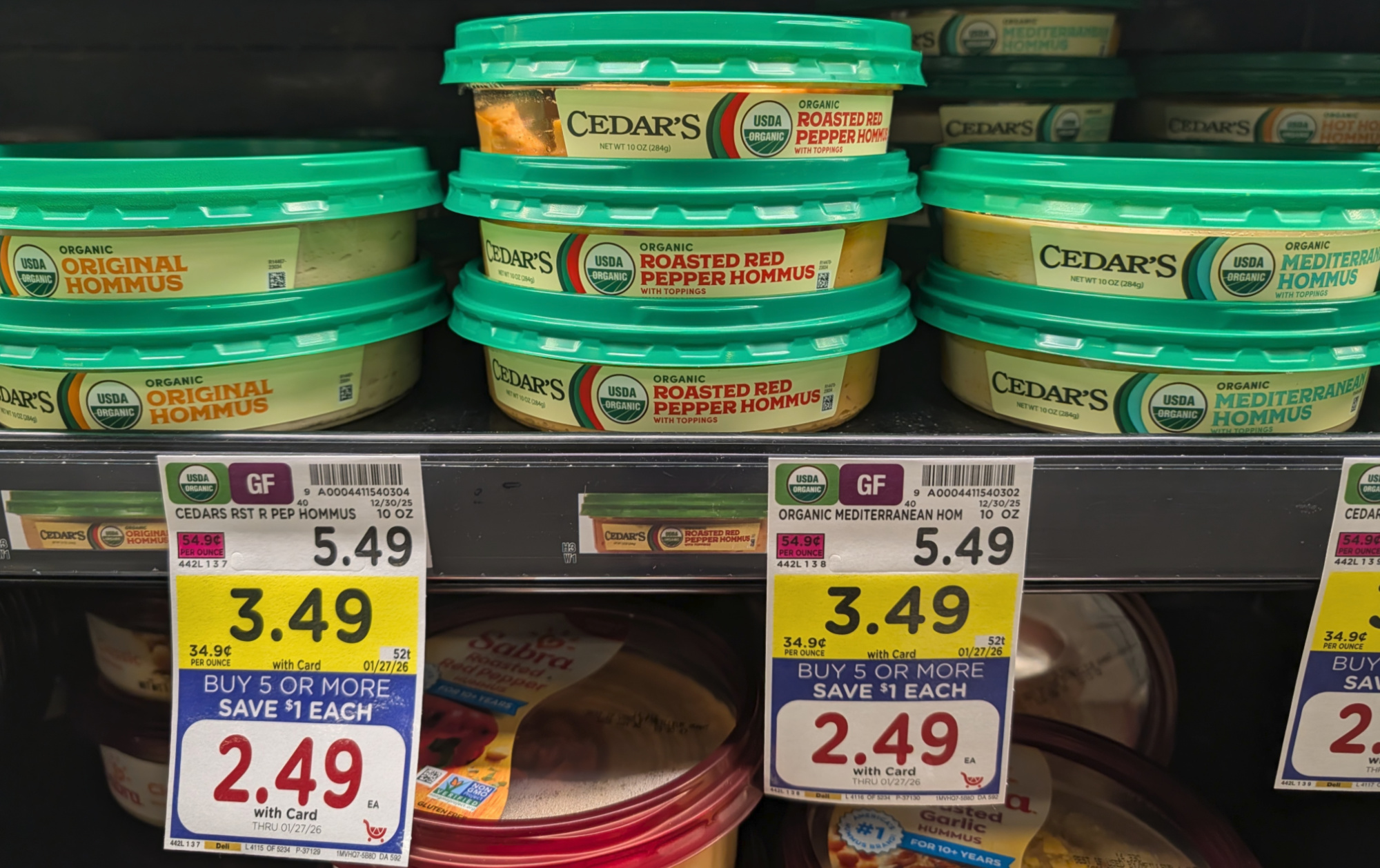 Cedar’s Organic Hommus, 10 oz, $2.49 (reg $5.49) – through 1/27