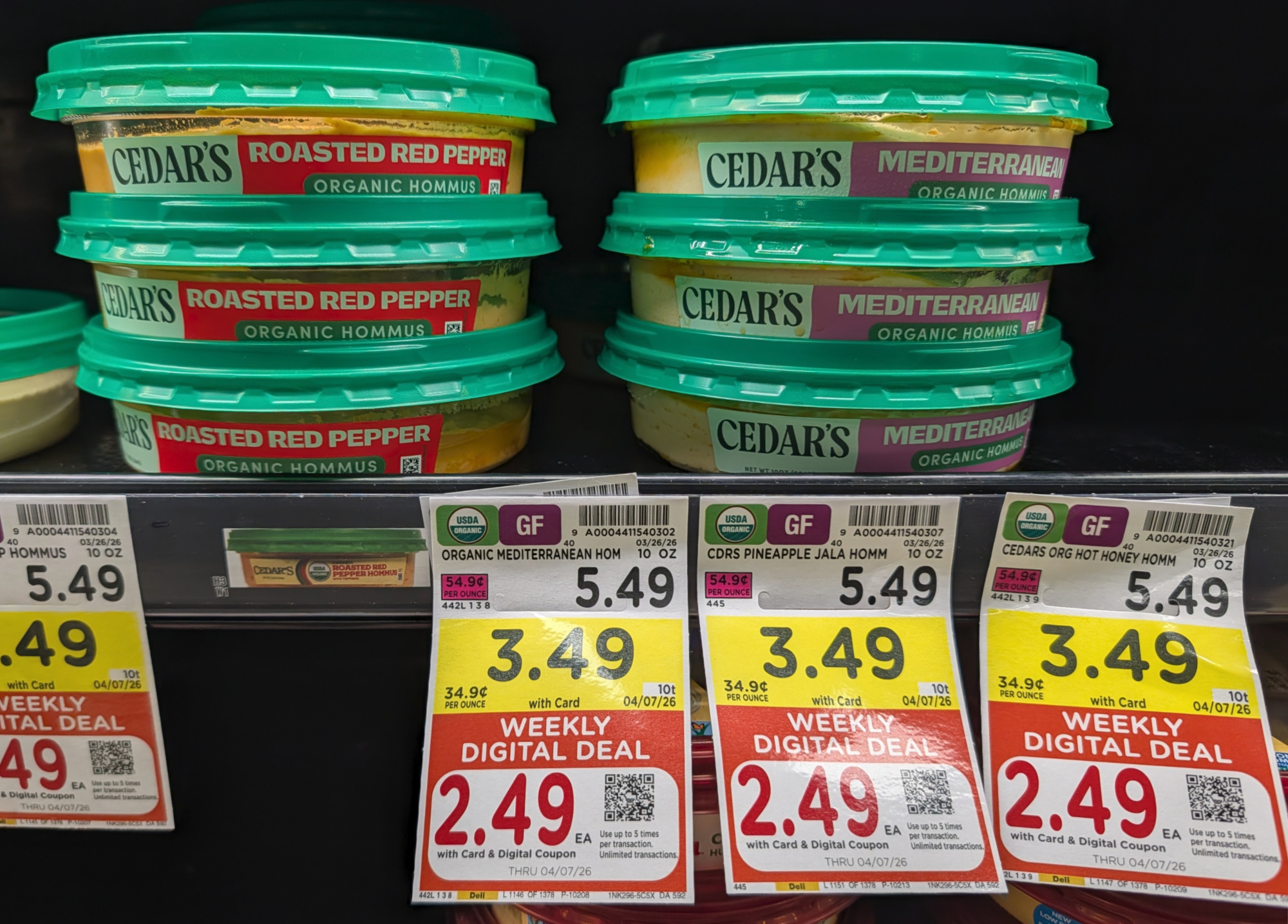 –$1/1 Cedar’s Organic Hummus, 10 oz, Kroger Super Saver Digital Coupon (use up to 5 times in a single transaction)