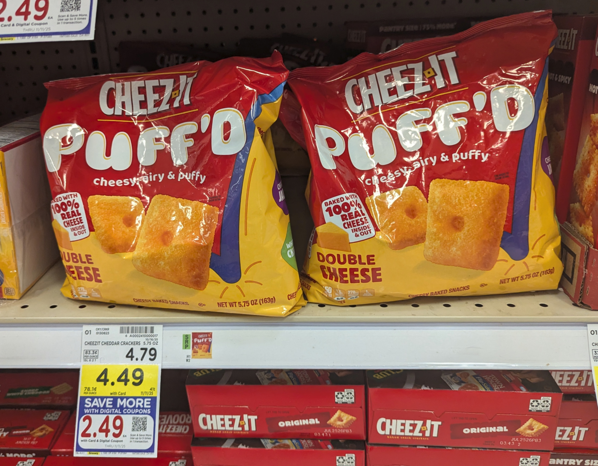 Grab a discount on Cheez-It Snap’d or Puff’d Crackers at Kroger. Combine the sale and coupon to pay as little as $2.49 per bag the next time you shop!