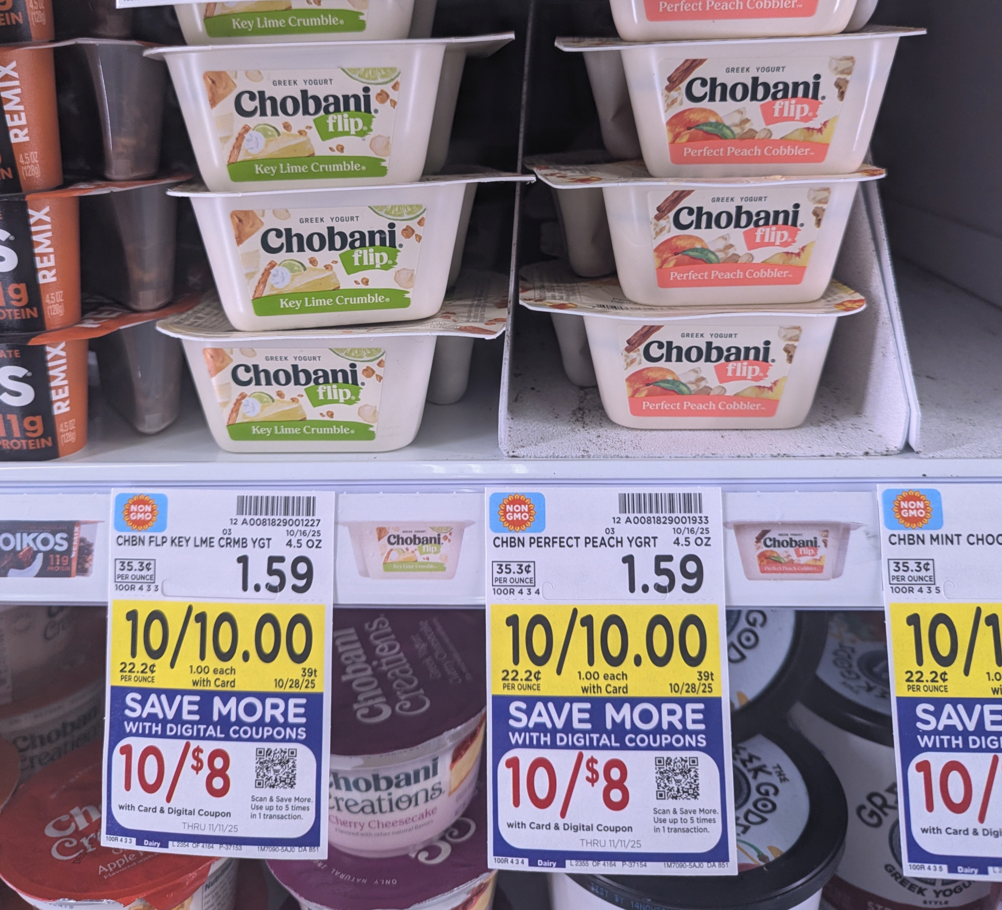 –$2/10 Chobani Core, Flip, Less And Zero Sugar, Creations, 20G (4.5-6.7 oz Cups), Kroger Super Saver Digital Coupon (use up to 5 times in a single transaction)