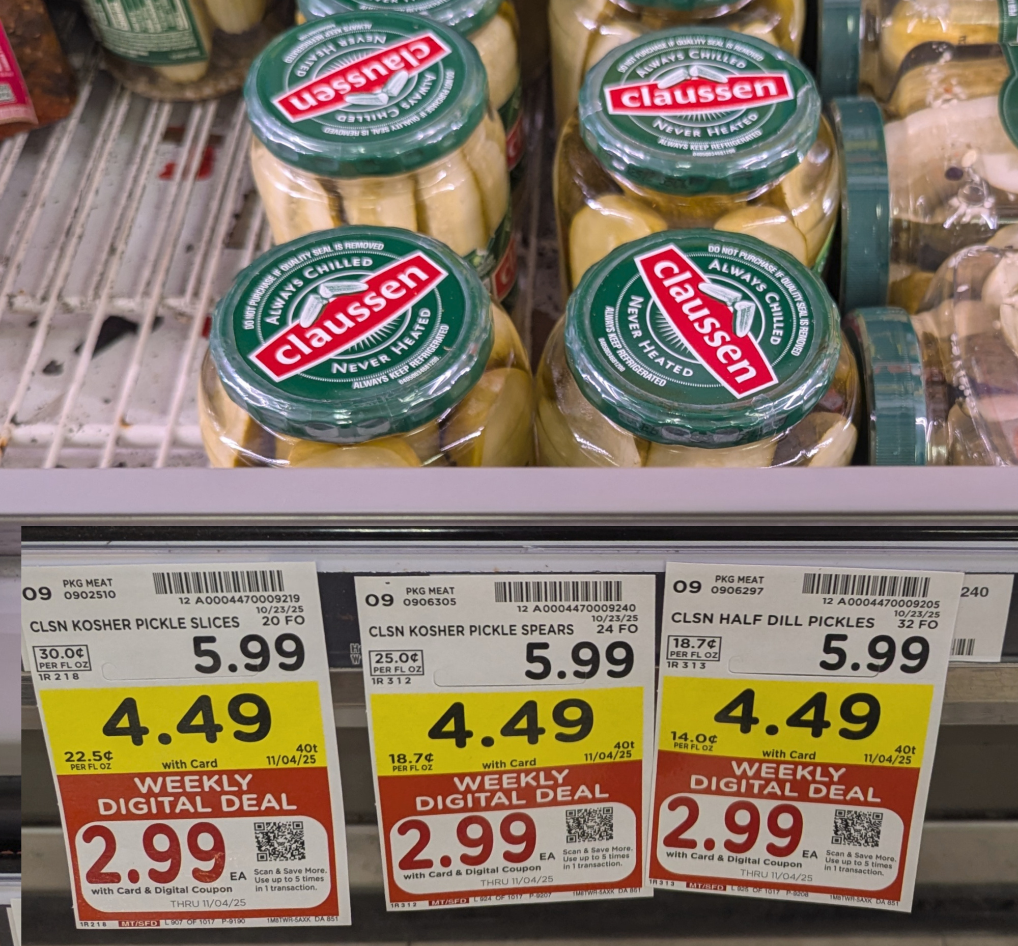 –$1.50/1 Claussen Pickles, 20 to 32 oz, Kroger Super Saver Digital Coupon (use up to 5 times in a single transaction)