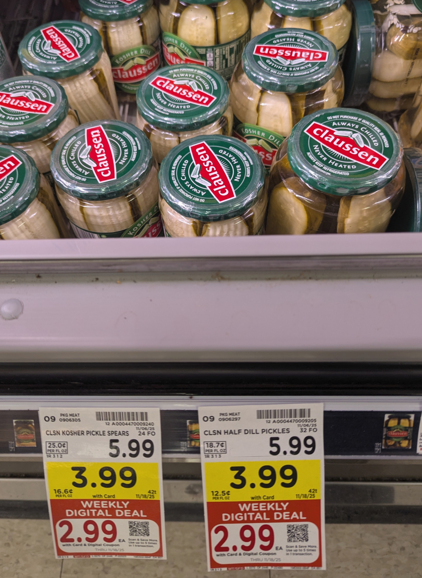 Claussen Pickles, 20 to 32 oz, $3.99 (reg $5.99) – through 11/18