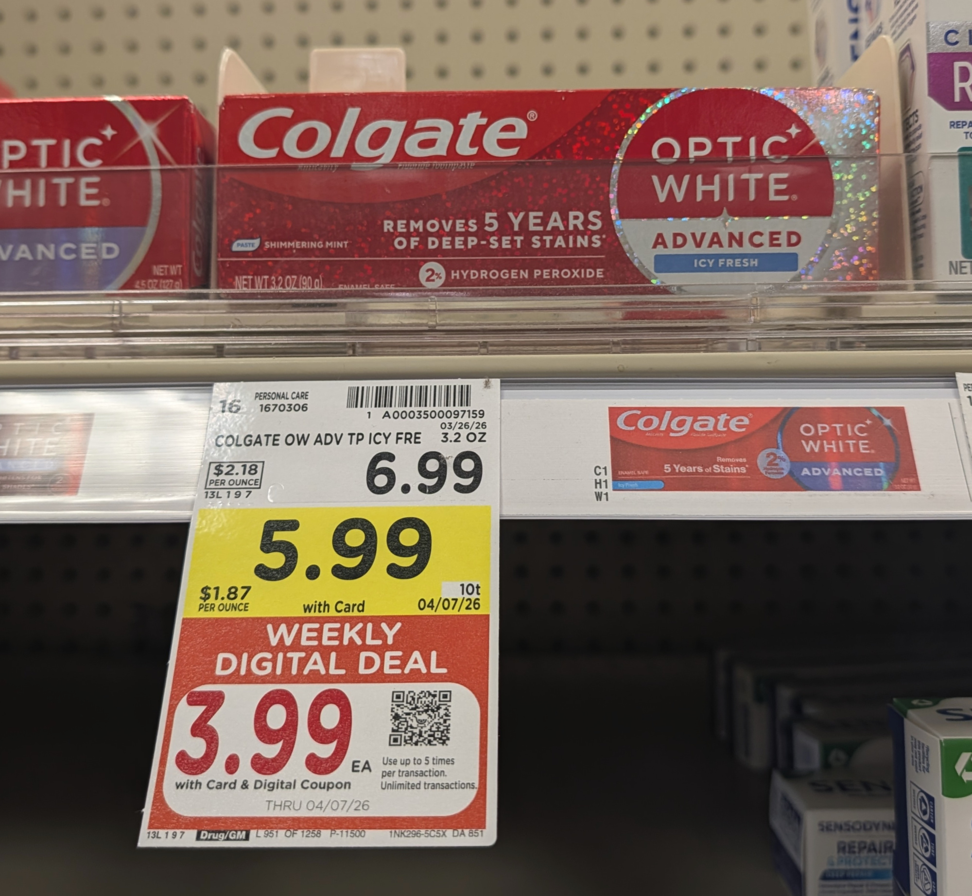 Colgate Optic Advanced White Toothpaste, 3.2 oz, $5.99 (reg $6.99) – through 4/7