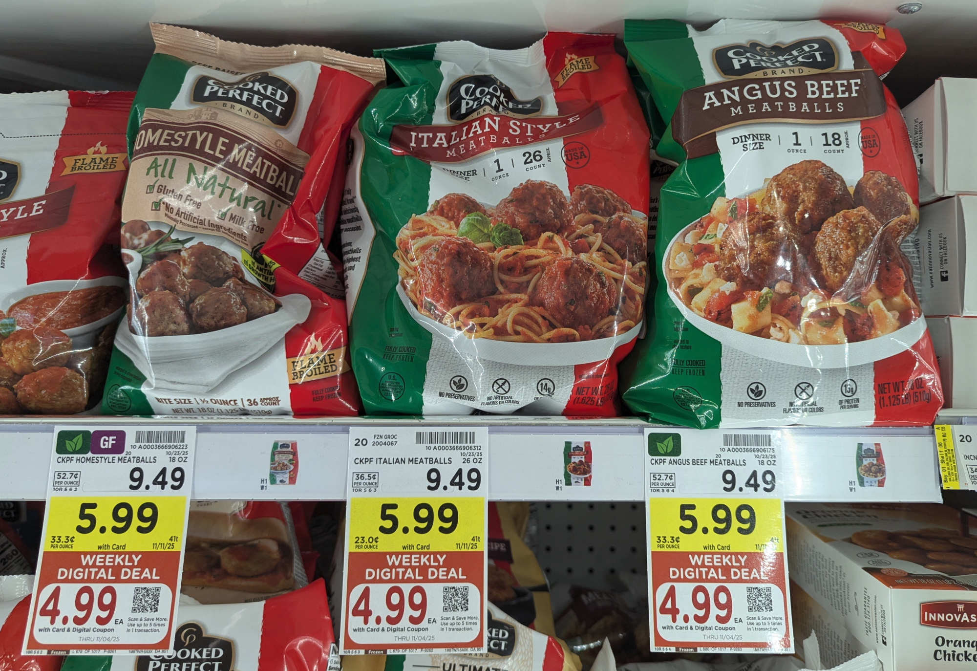 –$1/1 Cooked Perfect Meatballs, 18 to 28 oz, Kroger Super Saver Digital Coupon (use up to 5 times in a single transaction)