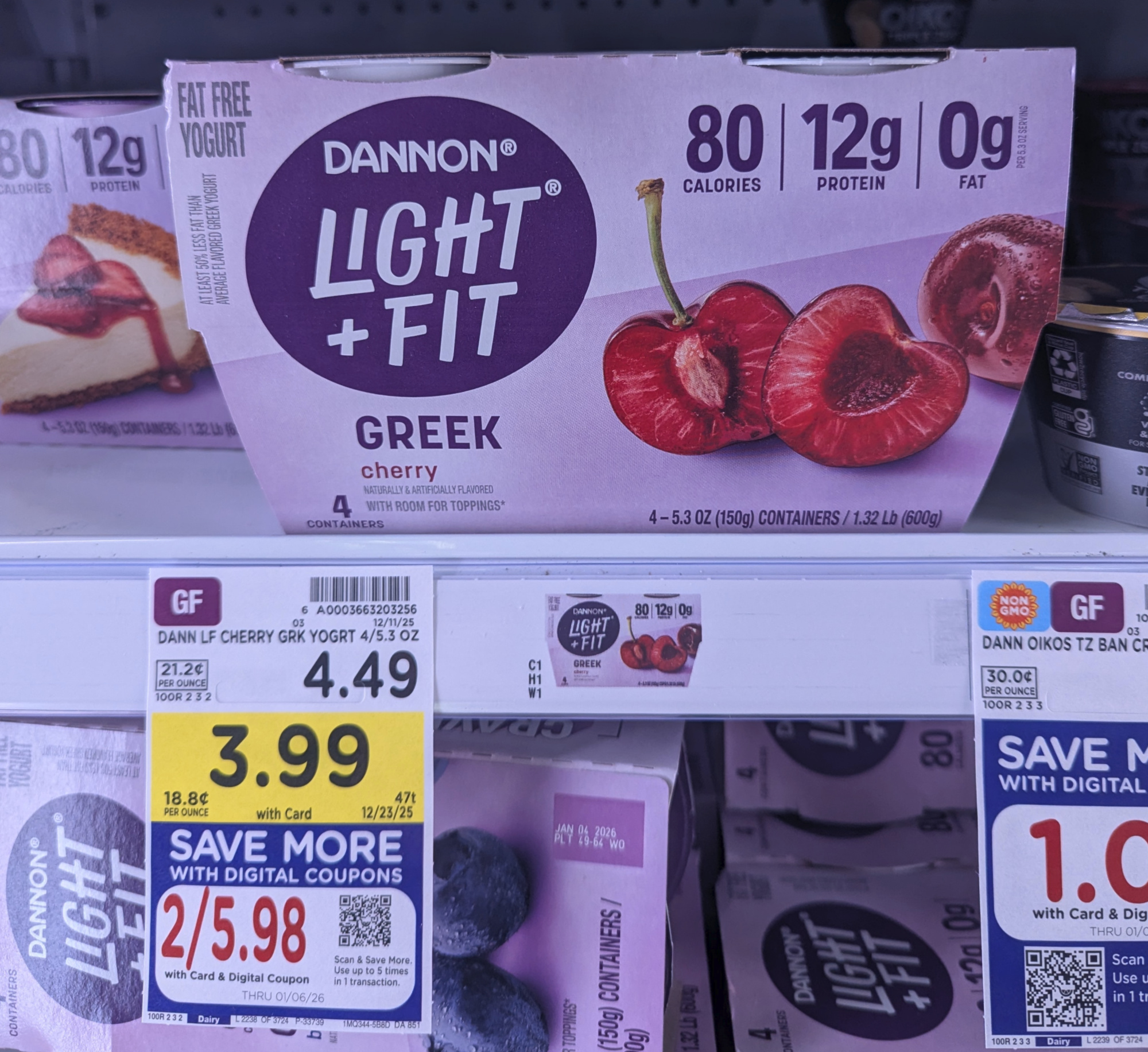 –$2/2 Oikos Triple Zero, or Light+Fit Yogurt (4-Pack, 5.3 oz), Kroger Super Saver Digital Coupon (use up to 5 times in a single transaction)