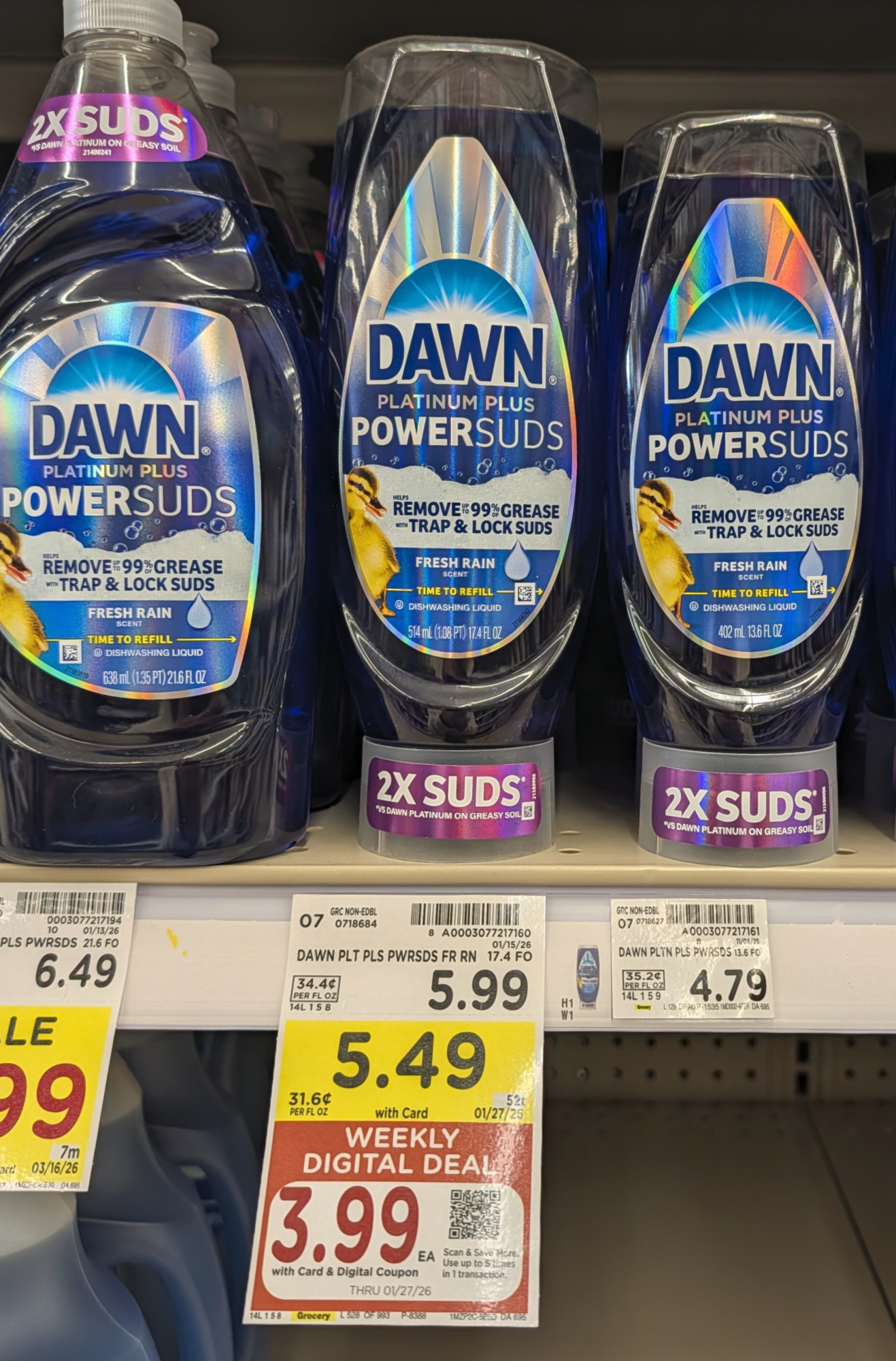 Dawn Platinum Plus PowerSuds Dishwashing Liquid, 17.4 oz bot, $5.49 (reg $5.99) – through 1/27