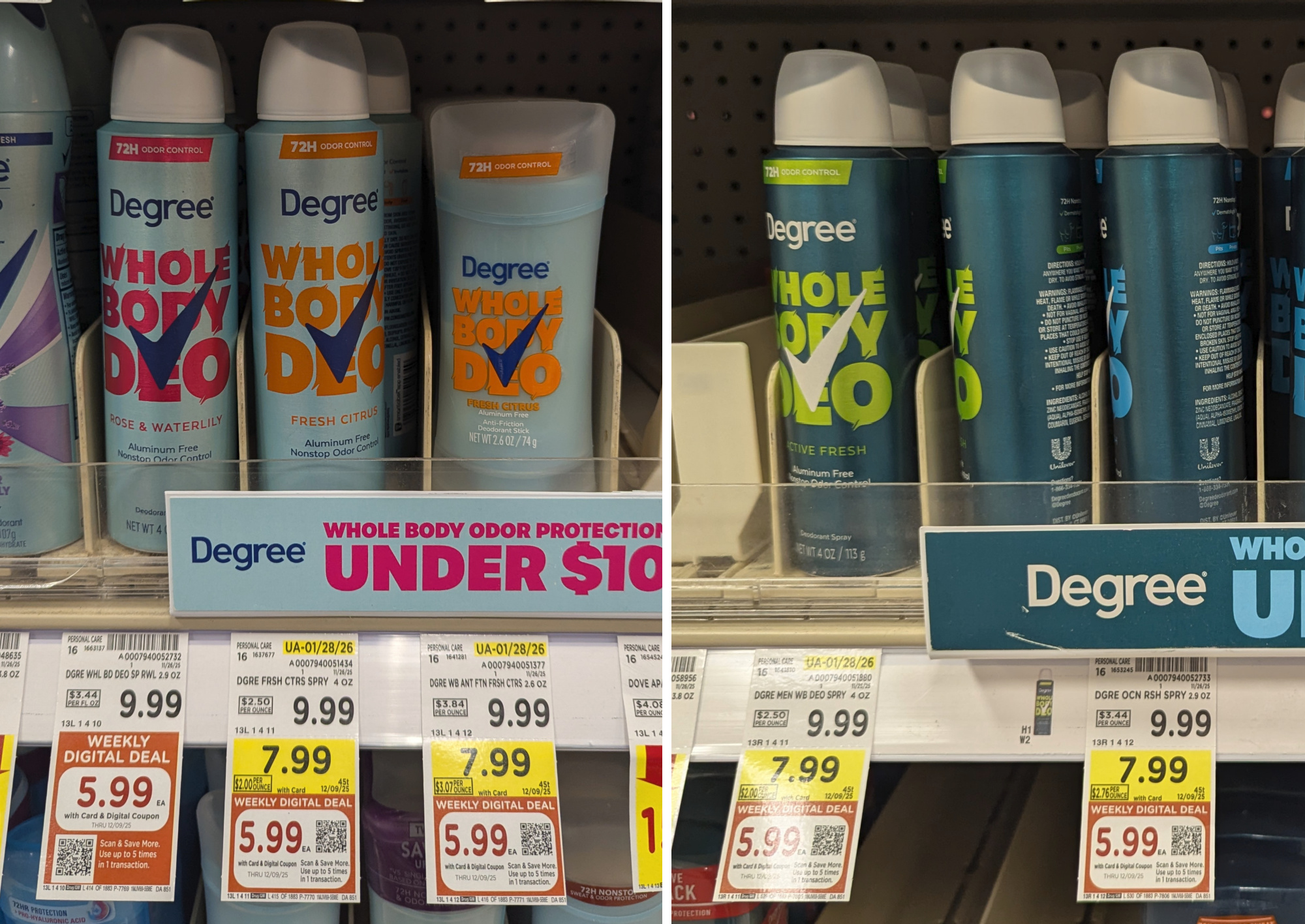 Degree Whole Body Deodorant, 2.6 to 4 oz, $7.99 (reg $9.99) – through 12/9