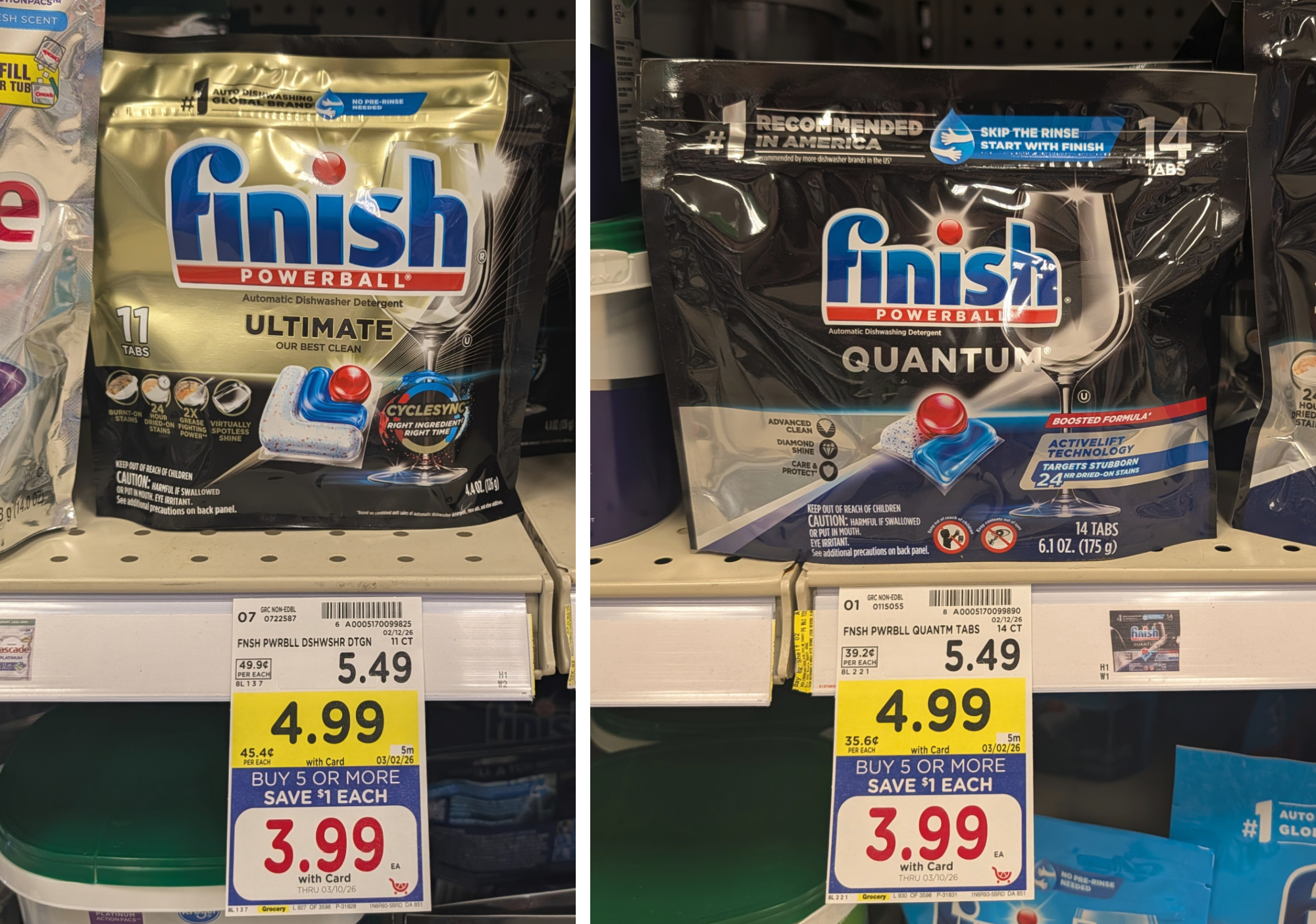 Pick up Finish Ultimate Dish Detergent Tabs as low as $1.99 at Kroger right now. Clip your coupon and get a deal the next time you shop!