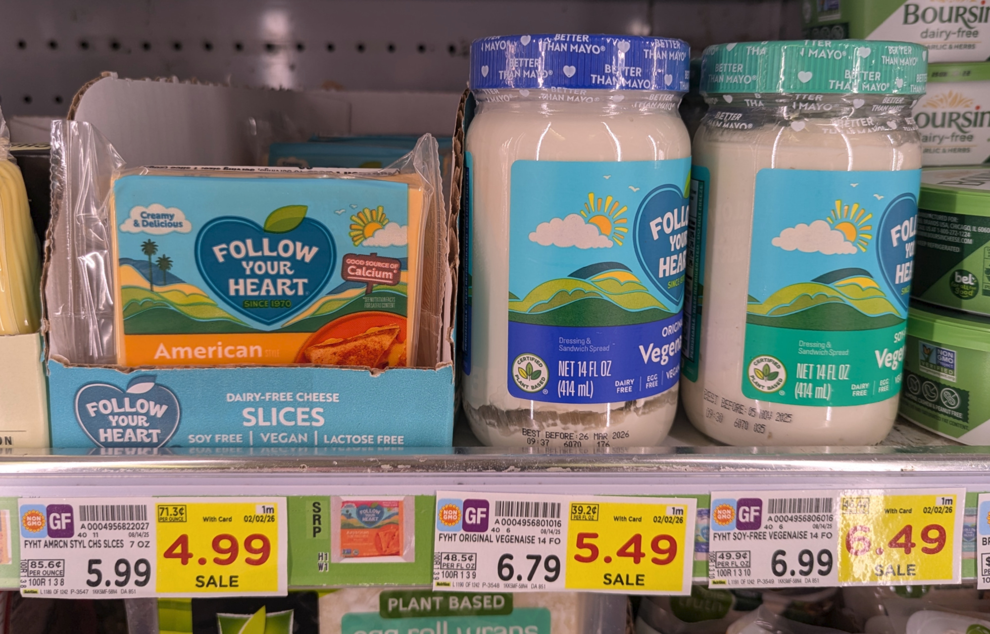 Right now you can pick up a deal on Follow Your Heart Cheese Slices at Kroger. Grab a pack for just $3.99 after discounts. Great time to grab a deal if you need a dairy free option.