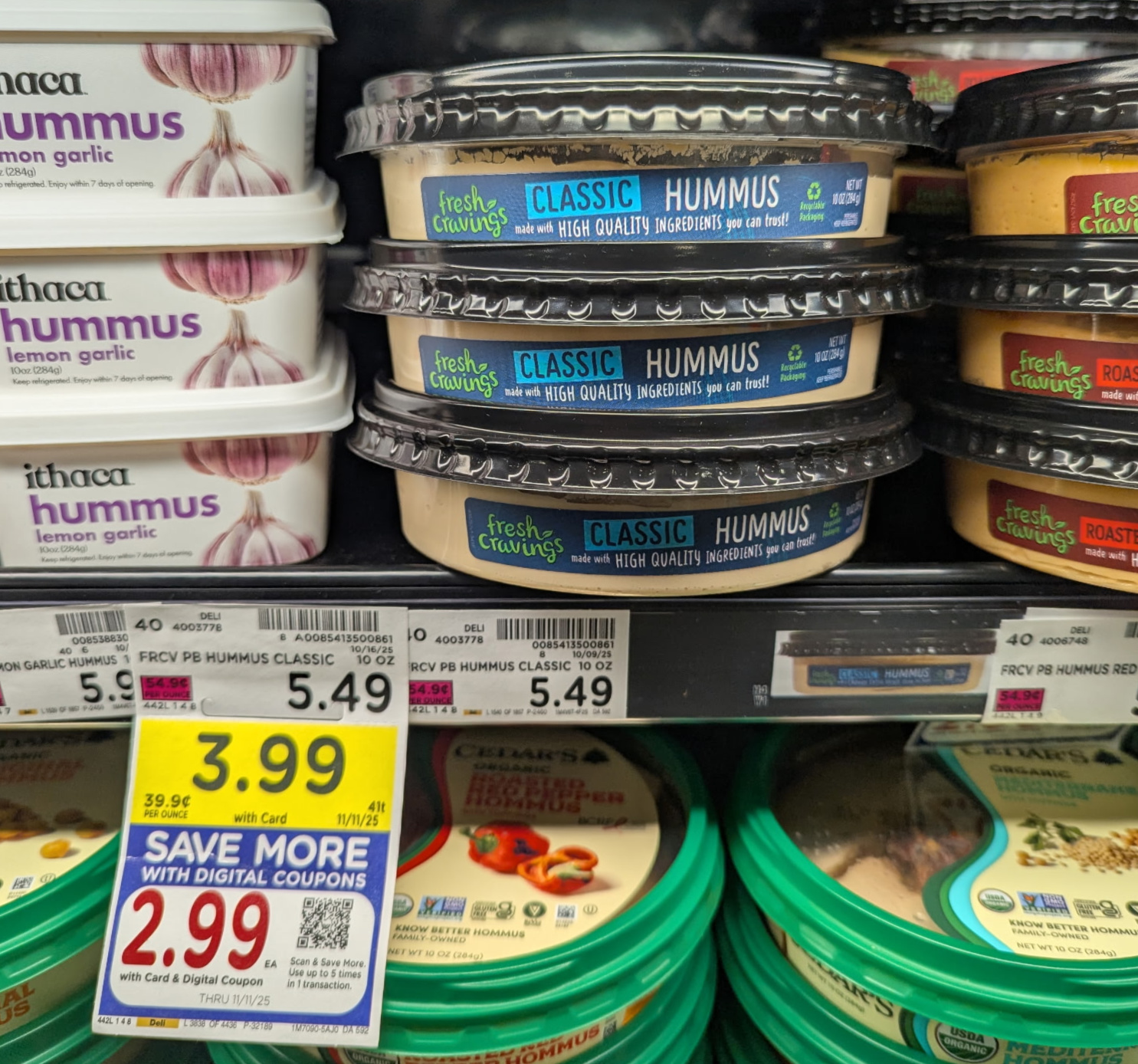–$1/1 Fresh Cravings Hummus (10 oz) Kroger Super Saver Digital Coupon (use up to 5 times in a single transaction)