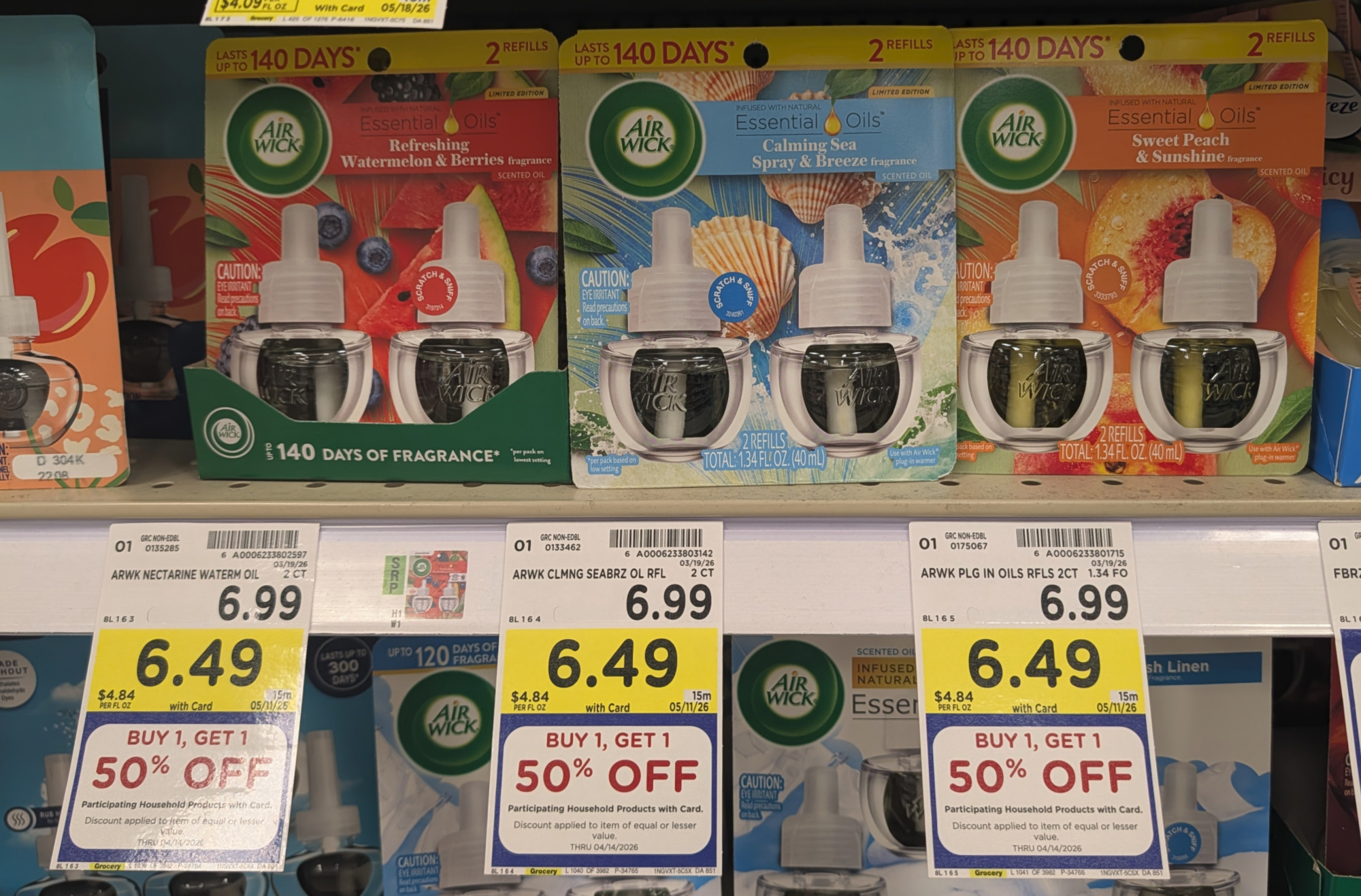 Transform your living space with inviting scents! Right now at Kroger, you can snag an incredible deal on Air Wick Scented Oil Refills. By combining the current sale with the cash back offer, you can get a 2-pack of refills for as little as $4.12!