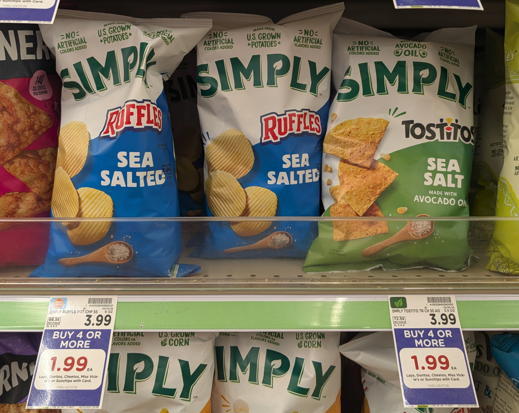 Get the bags of Frito-Lay Simply Snacks at a discount when you shop this week at Kroger. The bags are on sale with a cash back offer to pair up for even more savings!