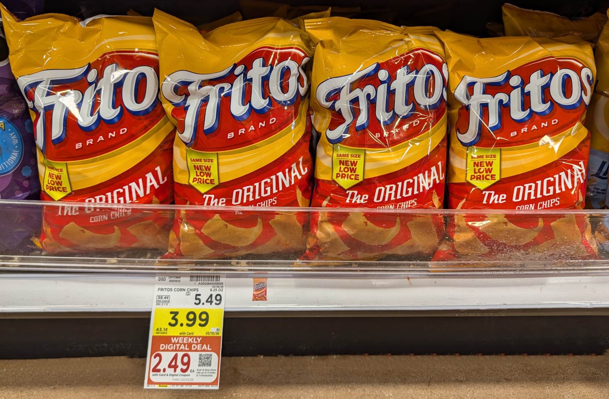Here’s a crunchy snack you can score on the cheap. Fritos are just $2.49 per bag at Kroger after discounts.