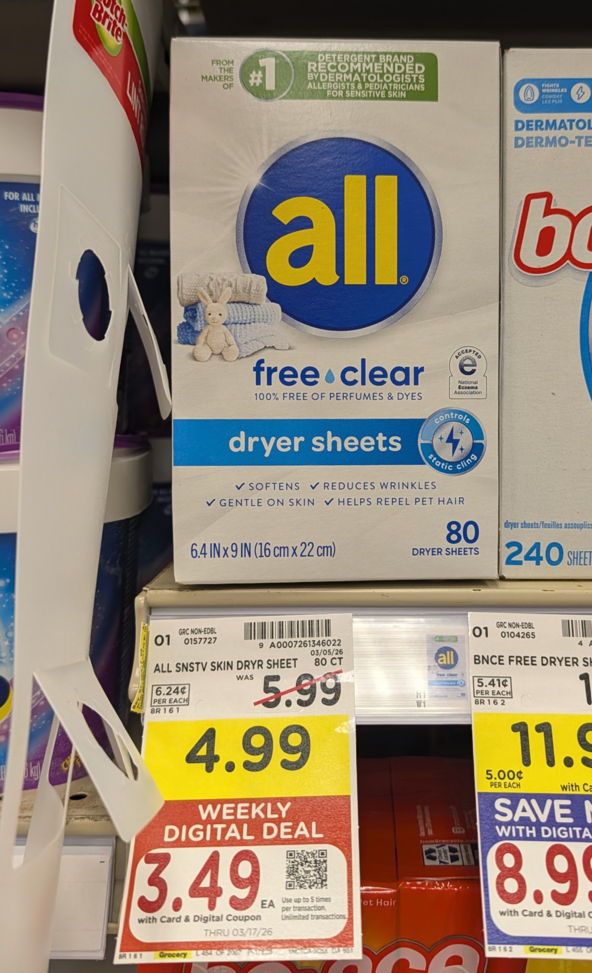 All Free Clear Dryer Sheets, 80 ct, $4.99 (reg $5.99) – through 3/17