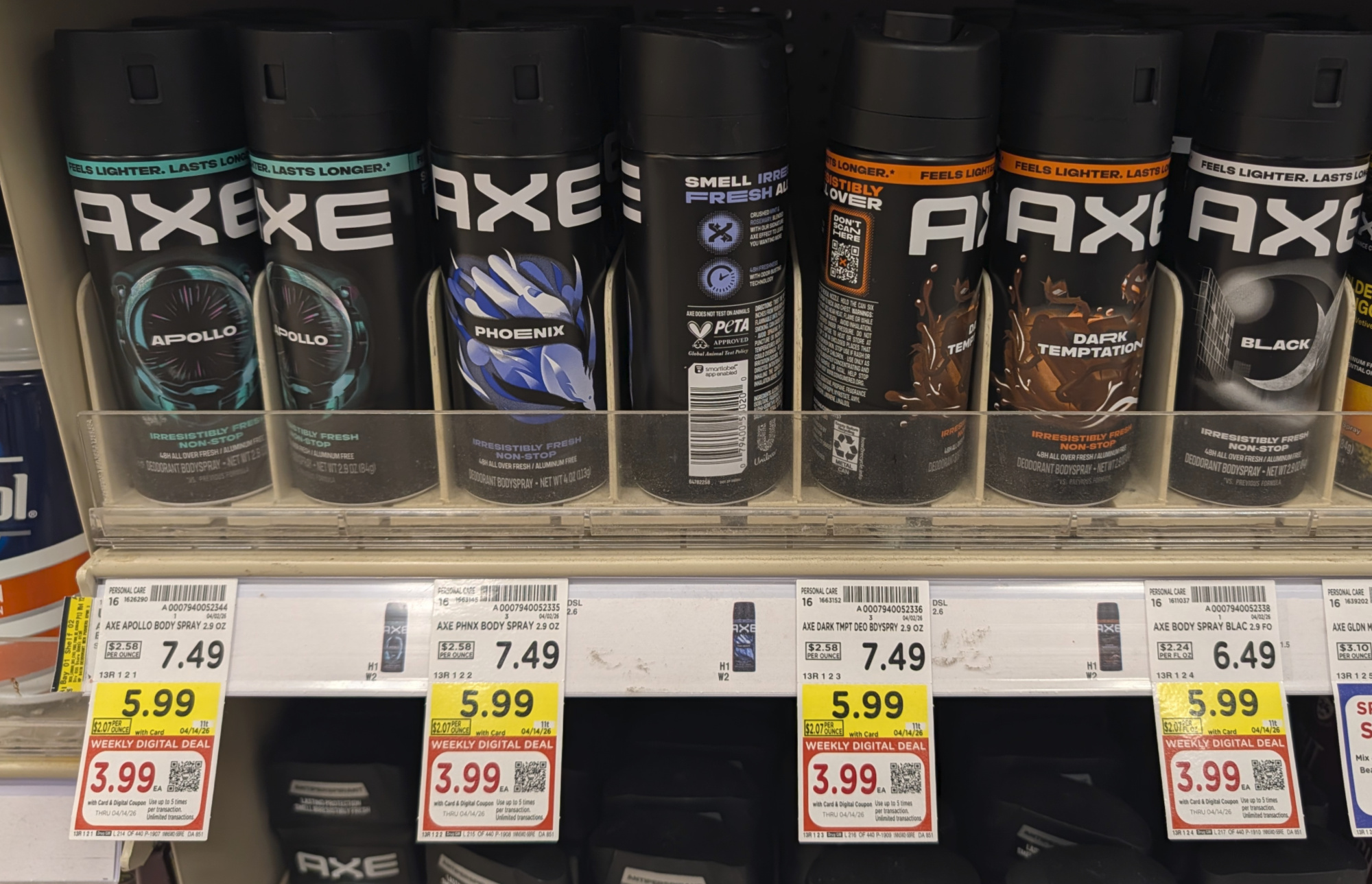 –$2/1 Axe Body Spray (2.9-4 oz), Axe Sticks (2.7-3 oz) or Degree APA (3.8 oz) or Degree Premium (2.6-2.7 oz), Kroger Super Saver Digital Coupon (use up to 5 times in a single transaction)