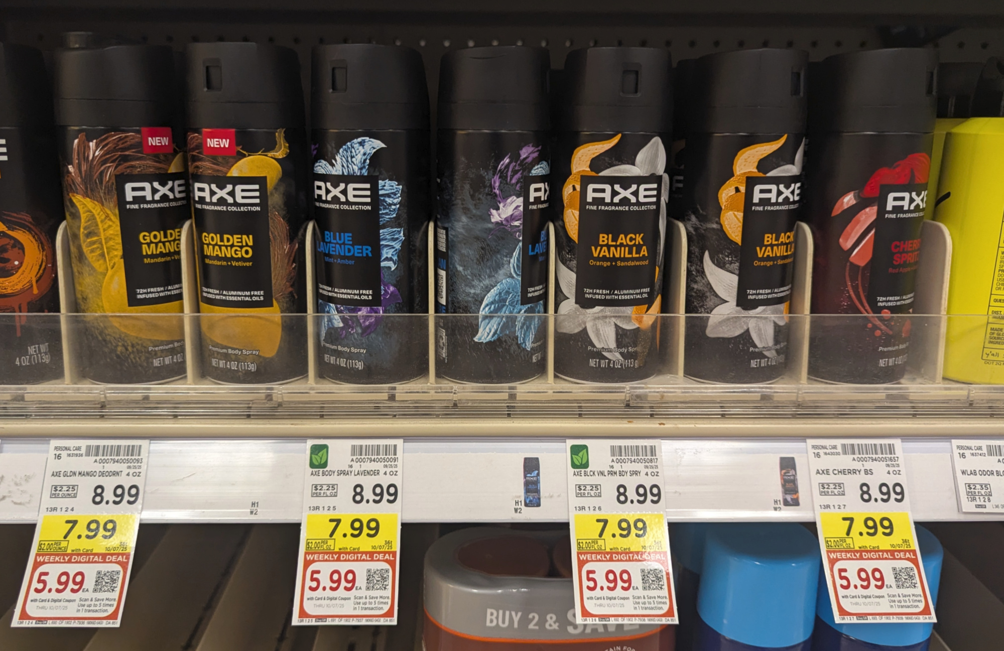–$2/1 Axe Body Spray, 4 oz, Kroger Super Saver Digital Coupon (use up to 5 times in a single transaction)