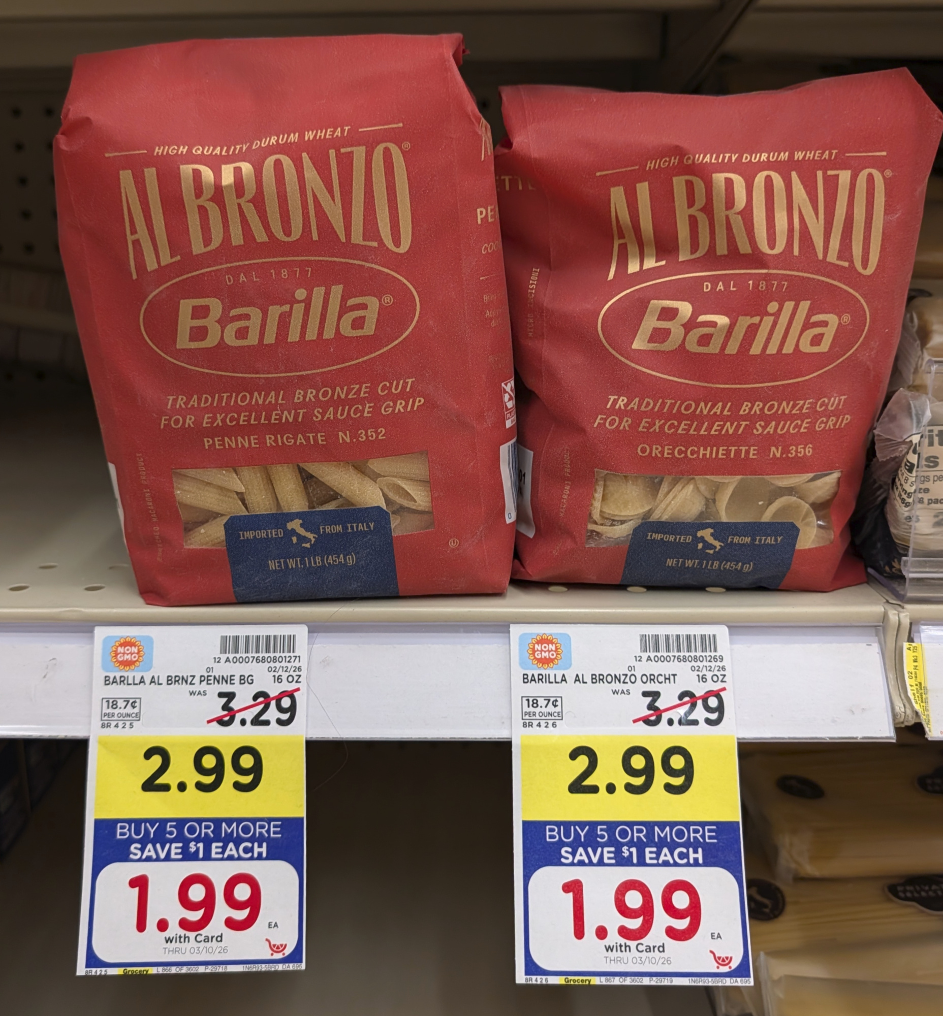 Barilla Al Bronzo Pasta, 16 oz, $1.99 (reg $3.29) – through 3/10