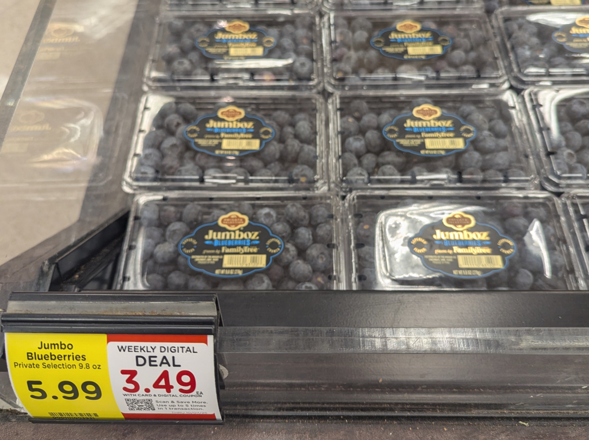 –$2.50/1 Jumbo Blueberries, 9.8 oz, Kroger Super Saver Digital Coupon (use up to 5 times in a single transaction)