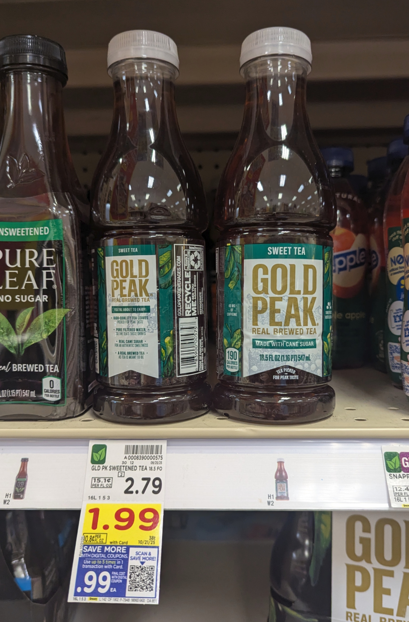 Clip your digital coupon and head to Kroger for a deal on Gold Peak Tea. After discounts, you can grab the bottles for as little as 99¢ each the next time you shop!