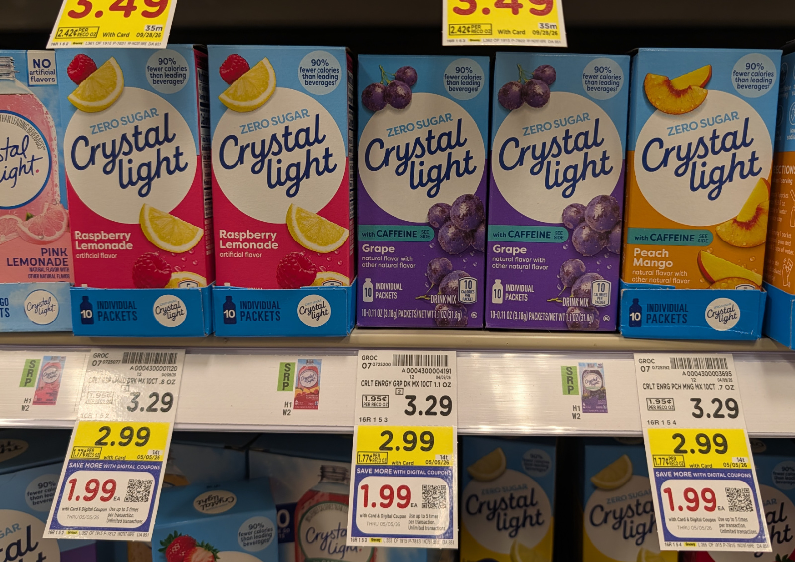 –$1/1 Crystal Light Drink Mix 10 ct, Kroger Super Saver Digital Coupon (use up to 5 times in a single transaction)
