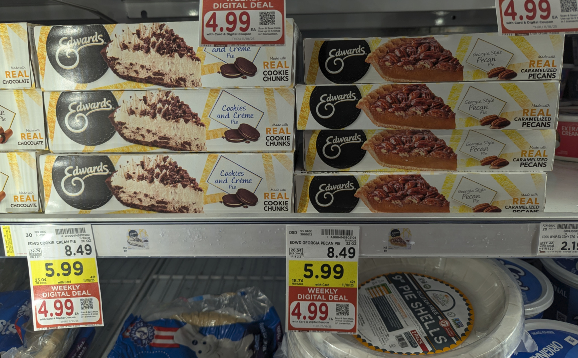 $1/1 Edwards Pie, 23.9 to 32 oz, Kroger Super Saver Digital Coupon (use up to 5 times in a single transaction)