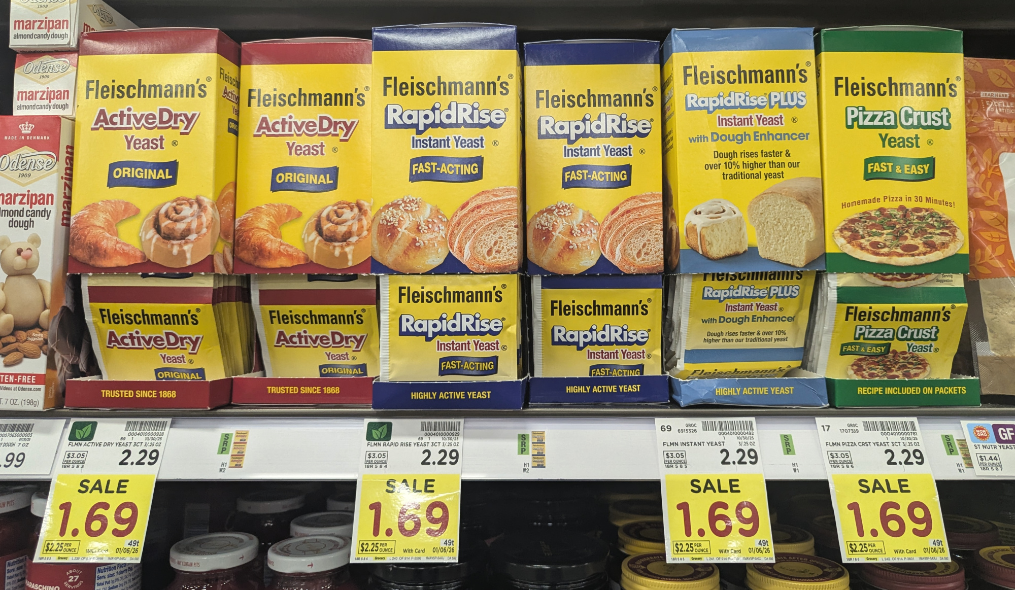 Fleischmann’s ActiveDry, Pizza Crust, or RapidRise Yeast, 3-pk, $1.69 (reg $2.29) – through 1/6/26