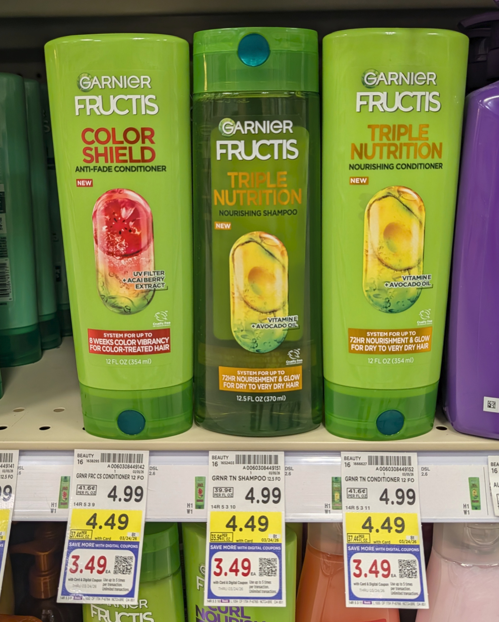 If you like Garnier Fructis Hair Care, head to Kroger right now and get your favorites on the cheap. With the digital coupon you pay just $3.49 per bottle.