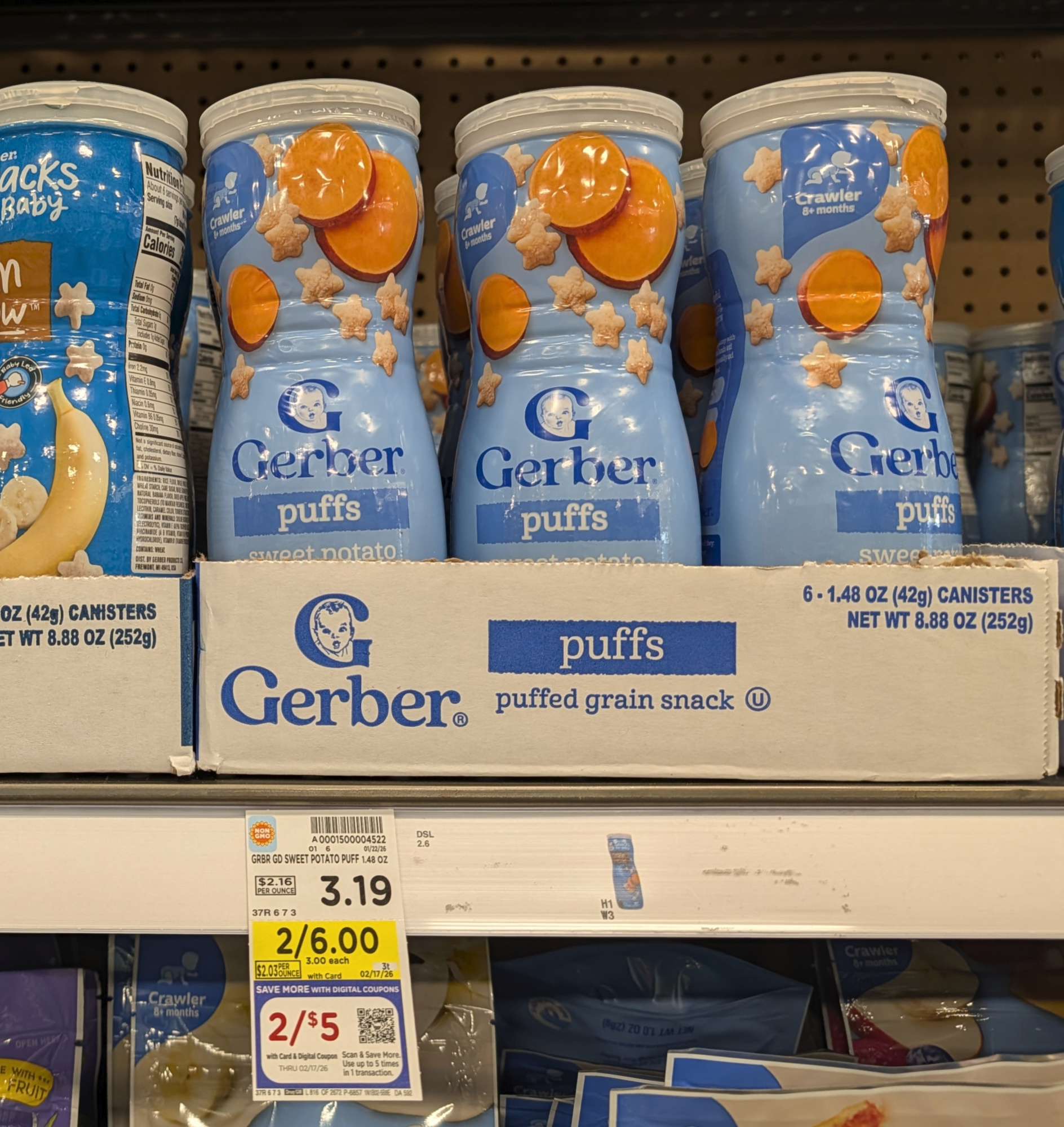 –$1/2 Gerber Puffs (1.48 oz), Kroger Super Saver Digital Coupon (use up to 5 times in a single transaction)