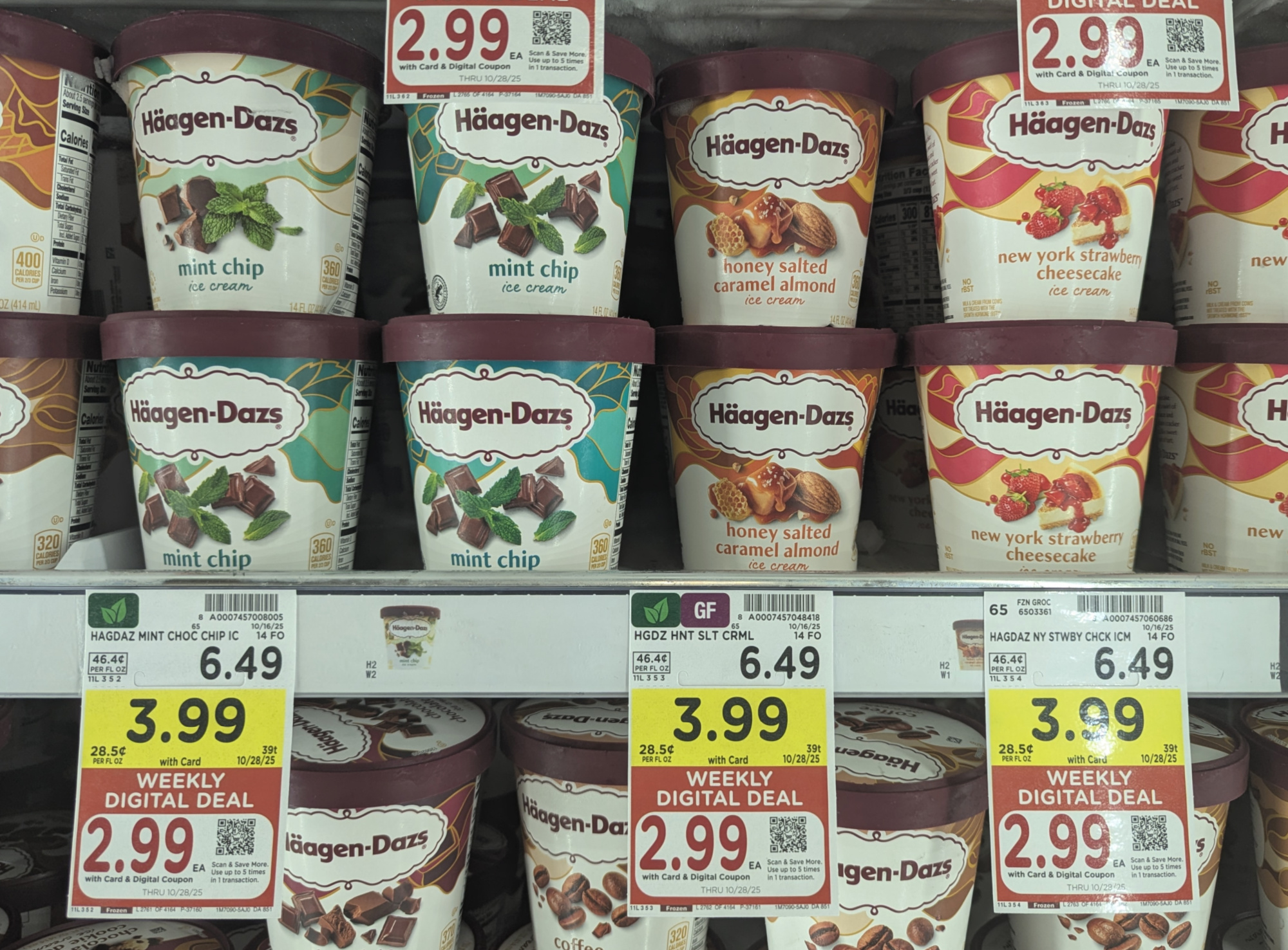 Use the sale and digital coupon to get the tubs or bars of Haagen-Dazs Ice Cream for as little as $2.99 at Kroger. Load up your freezer with lots of sweet treats without breaking the bank.